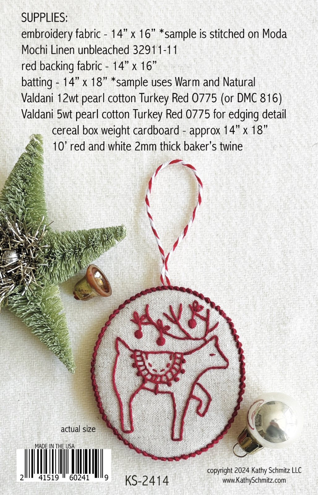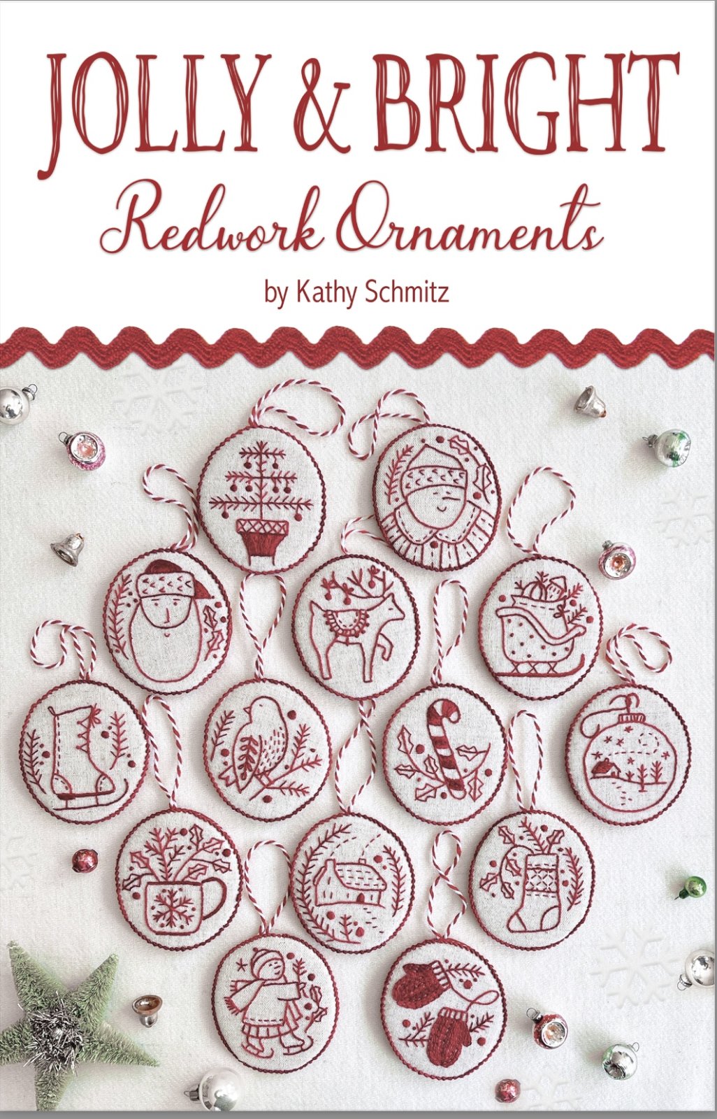 Jolly & Bright Redwork Ornaments Pattern by Kathy Schmitz