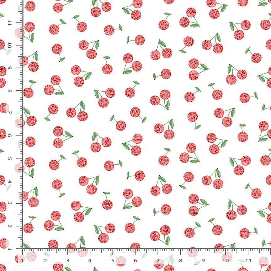 Shimmer - Cherry Disco Balls in White - by Dear Stella Fabrics