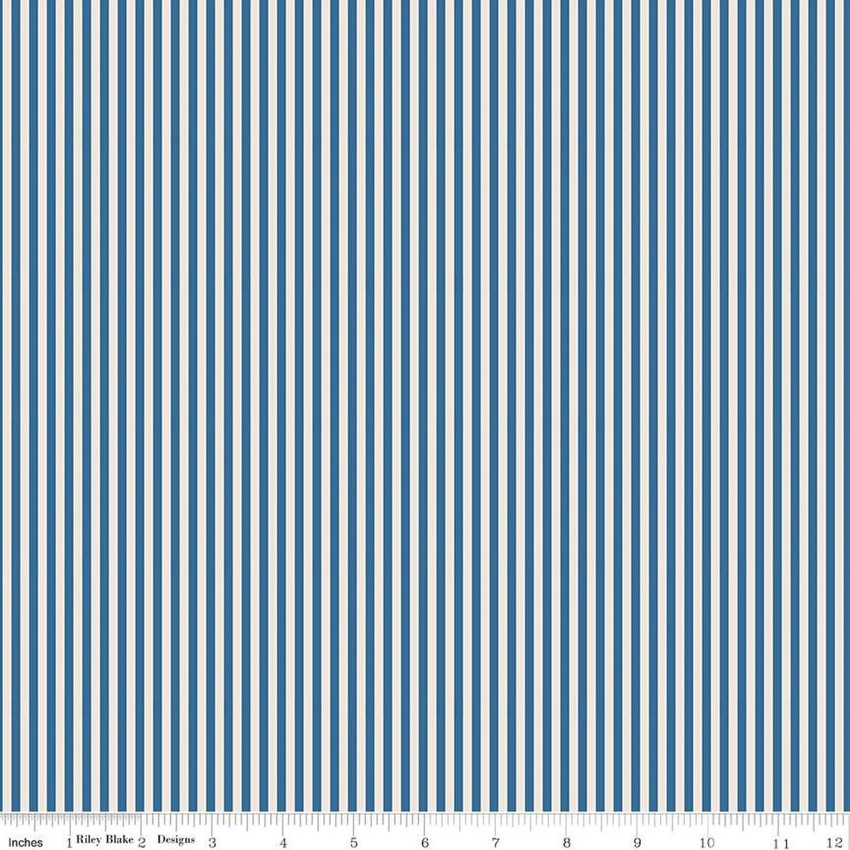 Riley Blake Basics - 1/8" Stripe on Ivory - Coastal Blue - Riley Blake Designs