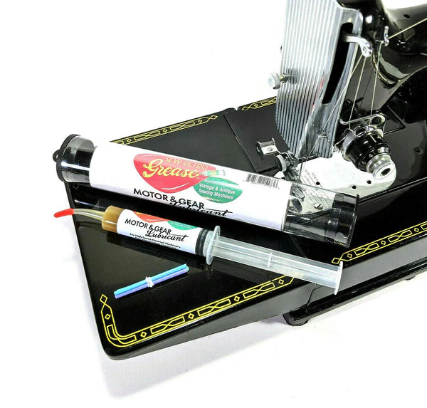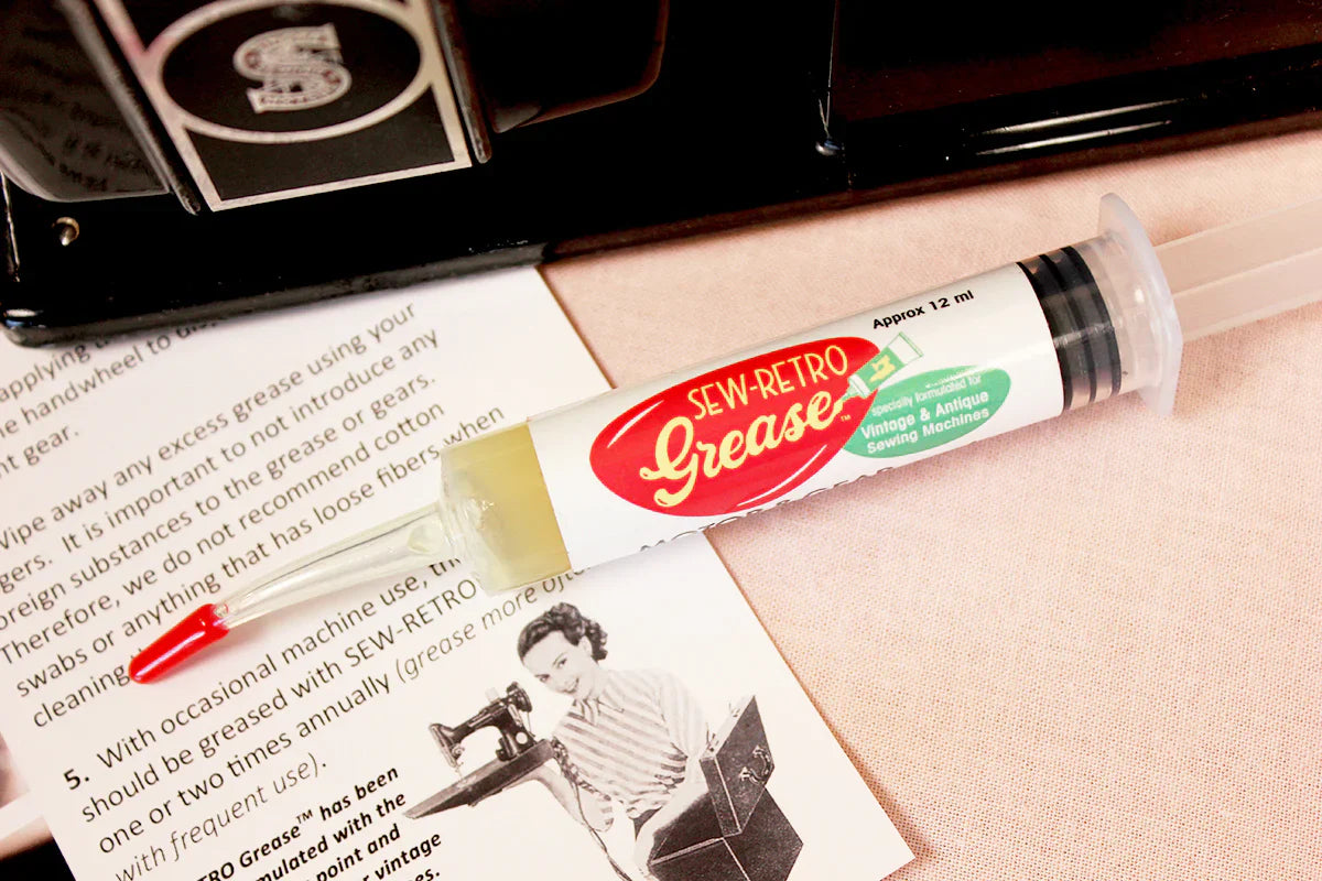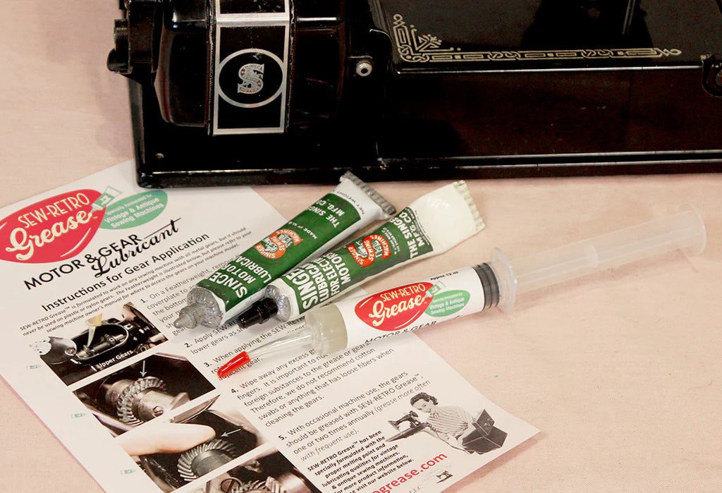 SEW-RETRO GreaseTM has been specially formulated with the proper melting point and lubricating qualities for vintage & antique sewing machines, including the Singer Featherweight 221 & 222K. Remember, some attachments need grease occasionally, too! SEW-RETRO GreaseTM is appropriate for any and all sewing machines with all-metal gears. (Do not use this lube with any plastic or nylon gears.)