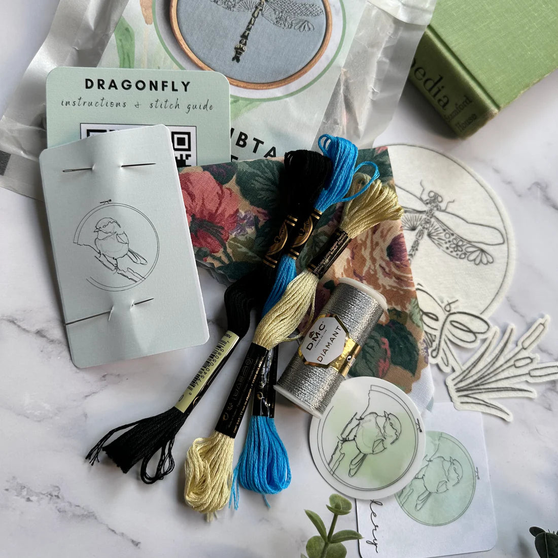 Olive Clubtail Dragonfly Mini Embroidery Kit - Nest Embirdery