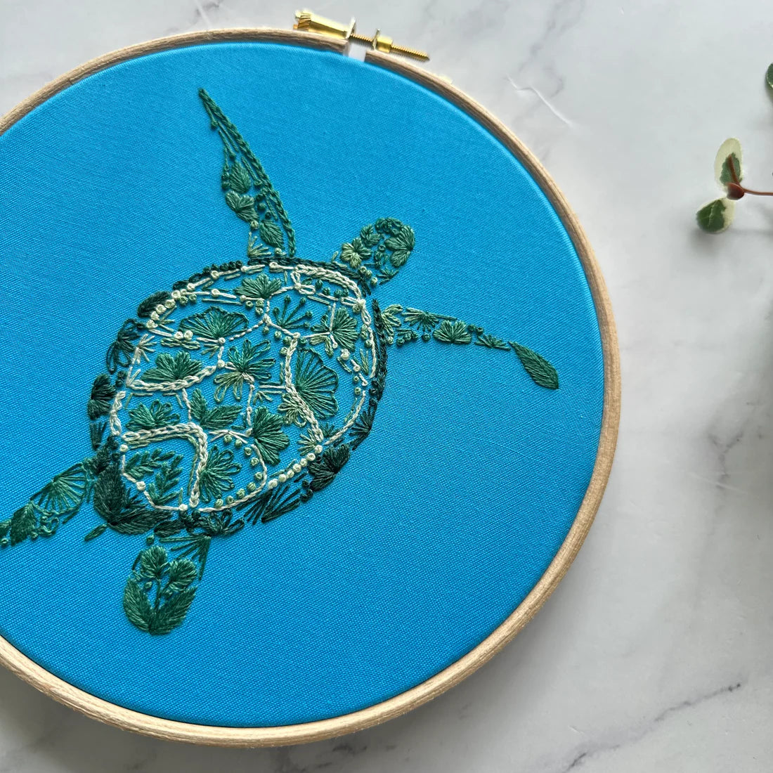 Sea Turtles exist across all of our oceans and are the ultimate poster child for pollution and global warming. Long-lived and complex, these creatures are worth keeping around. This kit makes a 7-inch embroidered piece.