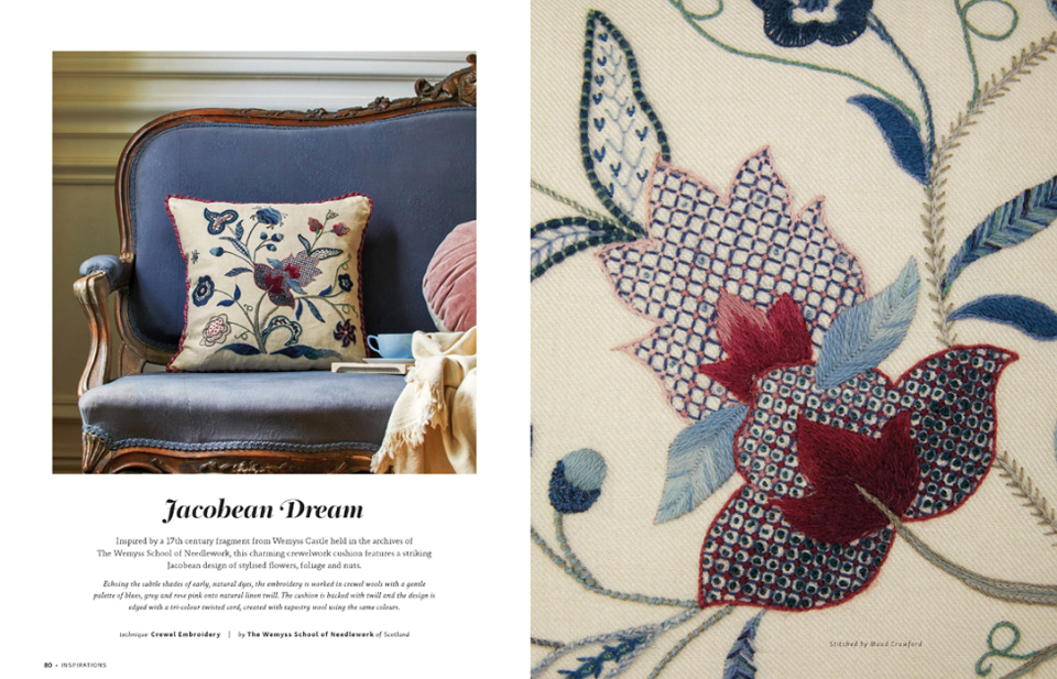 Jacobean Dream by The Wemyss School of NeedleworkCushion featuring crewel embroidery based on a 17th century crewel hanging