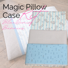 Magic pillowcase kits include 100% quilting cotton, curated to include the main body, accent, and sash. Kits include enough fabric to create one pillowcase.