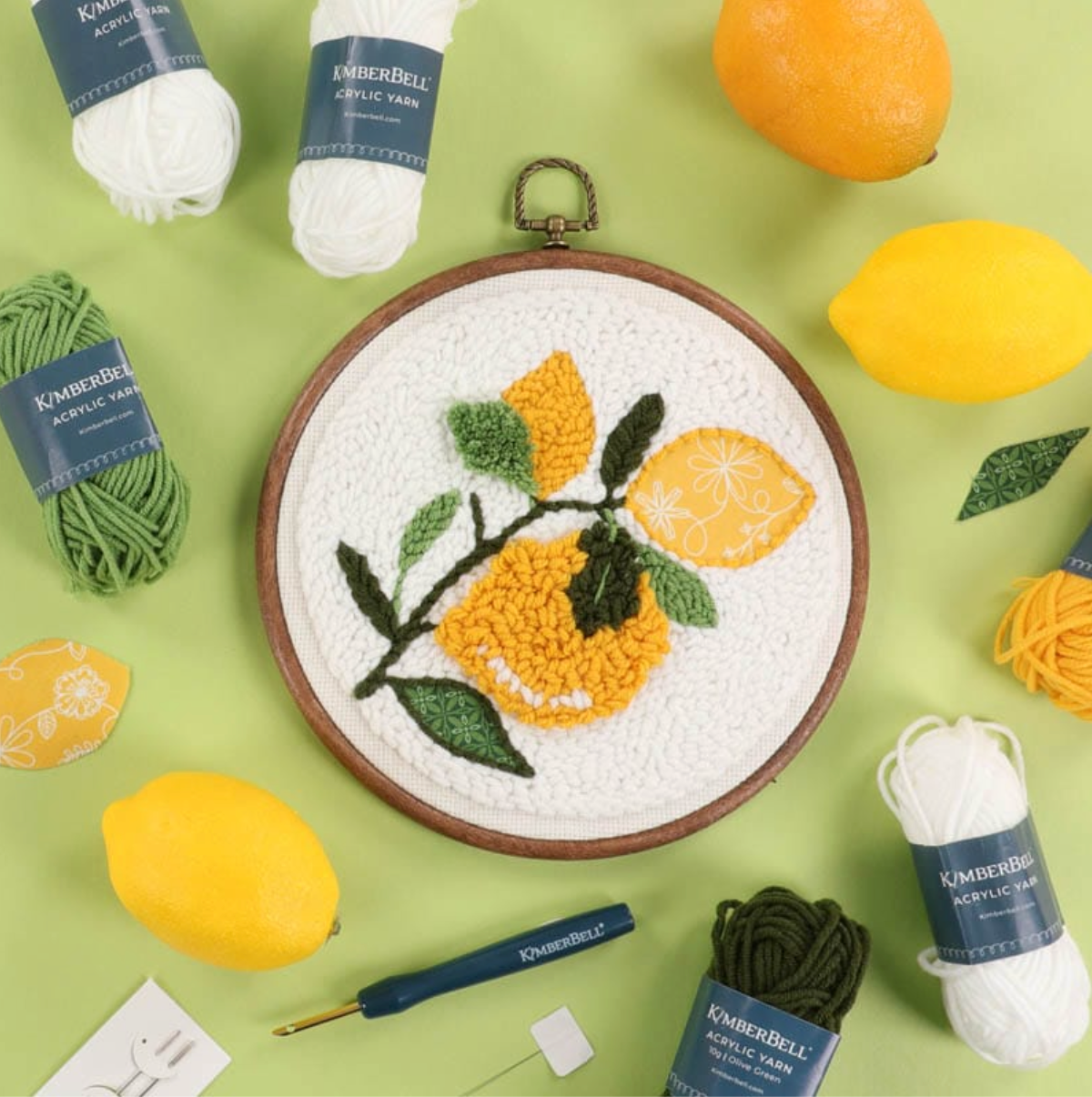 Our Punch Needle kit is fresh, fabulous, and so much fun, with all the supplies you need to completely finish your project. Enjoy punching lovely lemons and leaves.