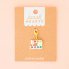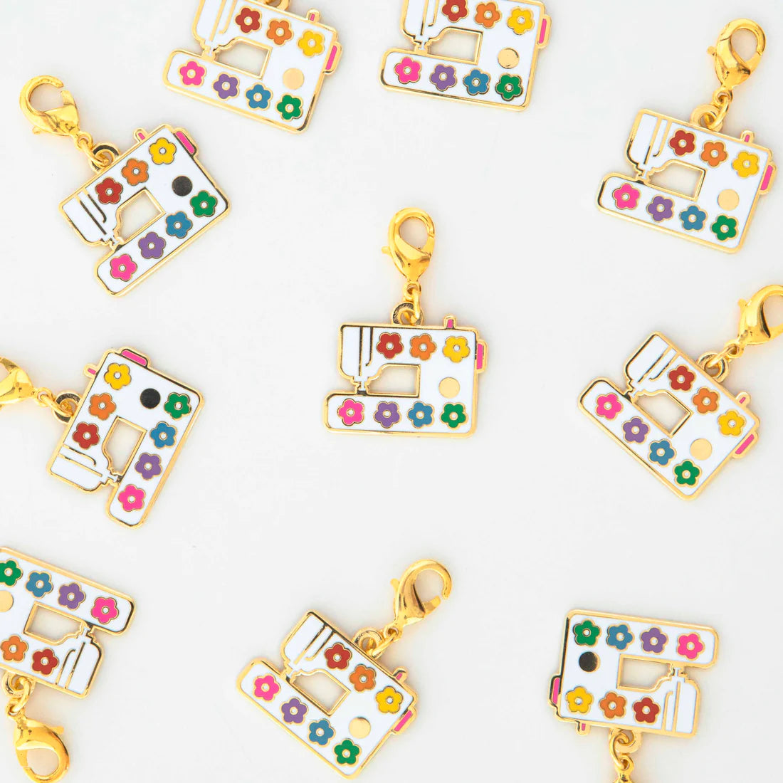Add some flair to your accessories with this Sewing Machine Zipper Charm. Featuring colourful daisies and a convenient lobster clasp, this charm can easily be added to any bag, jacket, or charm bracelet. Show off your love for sewing and add a pop of colour to your style.
