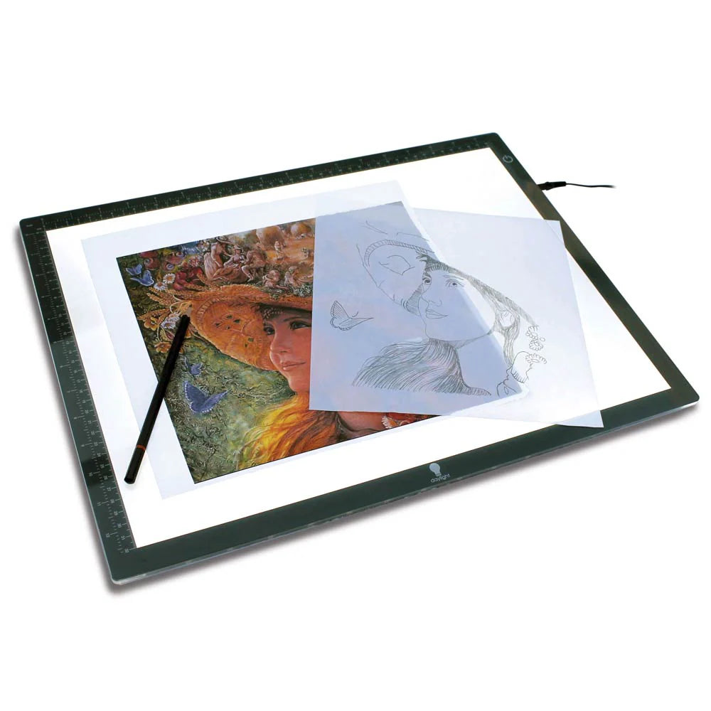 Ultra bright, ultra slim, ultra light, the Daylight Wafer lightbox is your must have tool for tracing, on paper or fabric. LED lightbox for an even brightness from edge to edge, the light is dimmable to suit paper weight and fabric thickness and include a handy marking guide on the sides (inches and centimetres). The Wafer 2 lightbox is a standard European A3 size.