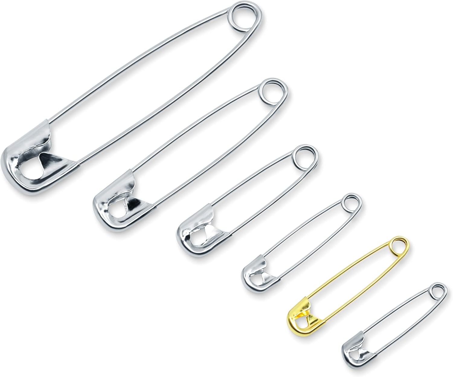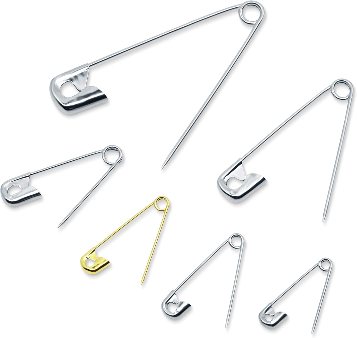 - Pins Included: 2, 1-1/2, 1-1/16, 7/8, 3/4-inch Nickel-Plated Steel safety pins and 7/8, 3/4-inch Brass safety pins