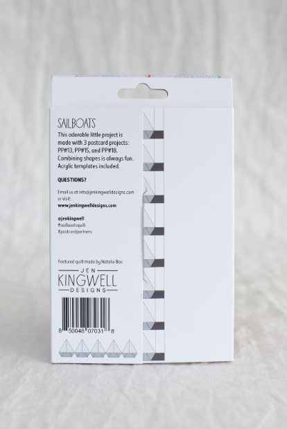 This adorable little project is made with 4 postcard projects: PP#13 (Half Hex), PP#15 (60-degree Equilateral Triangle), PP#18 (Half Rectangle Triangles). Combining shapes is always fun. Acrylic templates and instructions for 4 projects included.