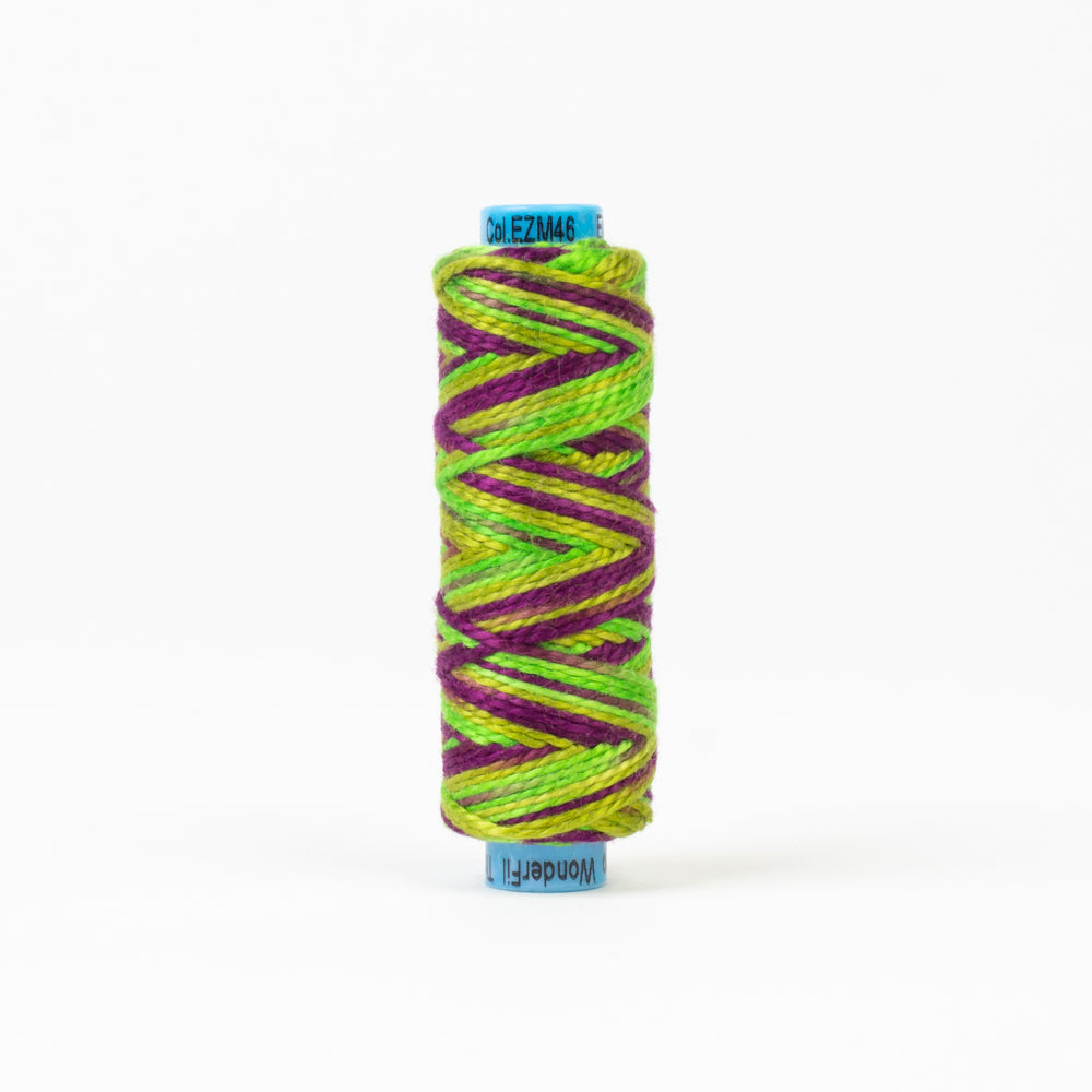 This gorgeous 3wt, random dyed contrasting variegates, 2-ply 100% long staple Egyptian cotton thread is double-gassed and mercerized, resulting in a wonderfully smooth and lustrous surface that allows the thread to glide beautifully through all types of fabrics and fibres. The thread’s tight twist creates beautifully firm stitche