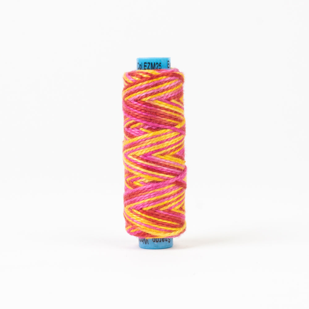 This gorgeous 3wt, random dyed contrasting variegates, 2-ply 100% long staple Egyptian cotton thread is double-gassed and mercerized, resulting in a wonderfully smooth and lustrous surface that allows the thread to glide beautifully through all types of fabrics and fibres. The thread’s tight twist creates beautifully firm stitche