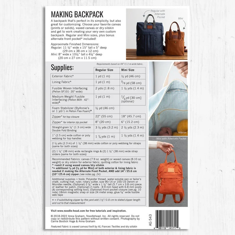 Making Backpack Pattern by Noodlehead