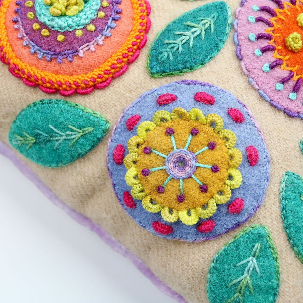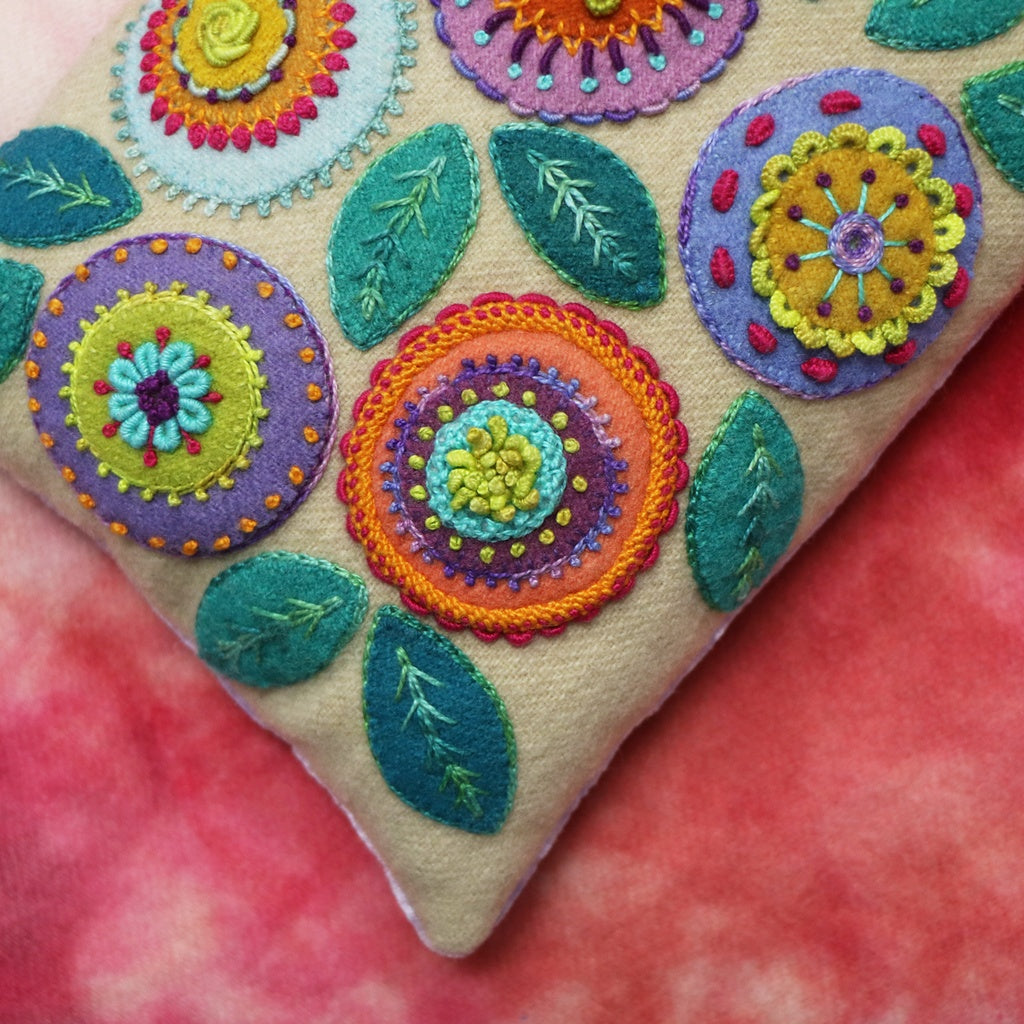 Stitch a little garden through an exploration of wool appliqué and vibrant embroidery. The velvet backing adds a touch of luxury to your piece, and keeps it from shifting around on your sewing table!