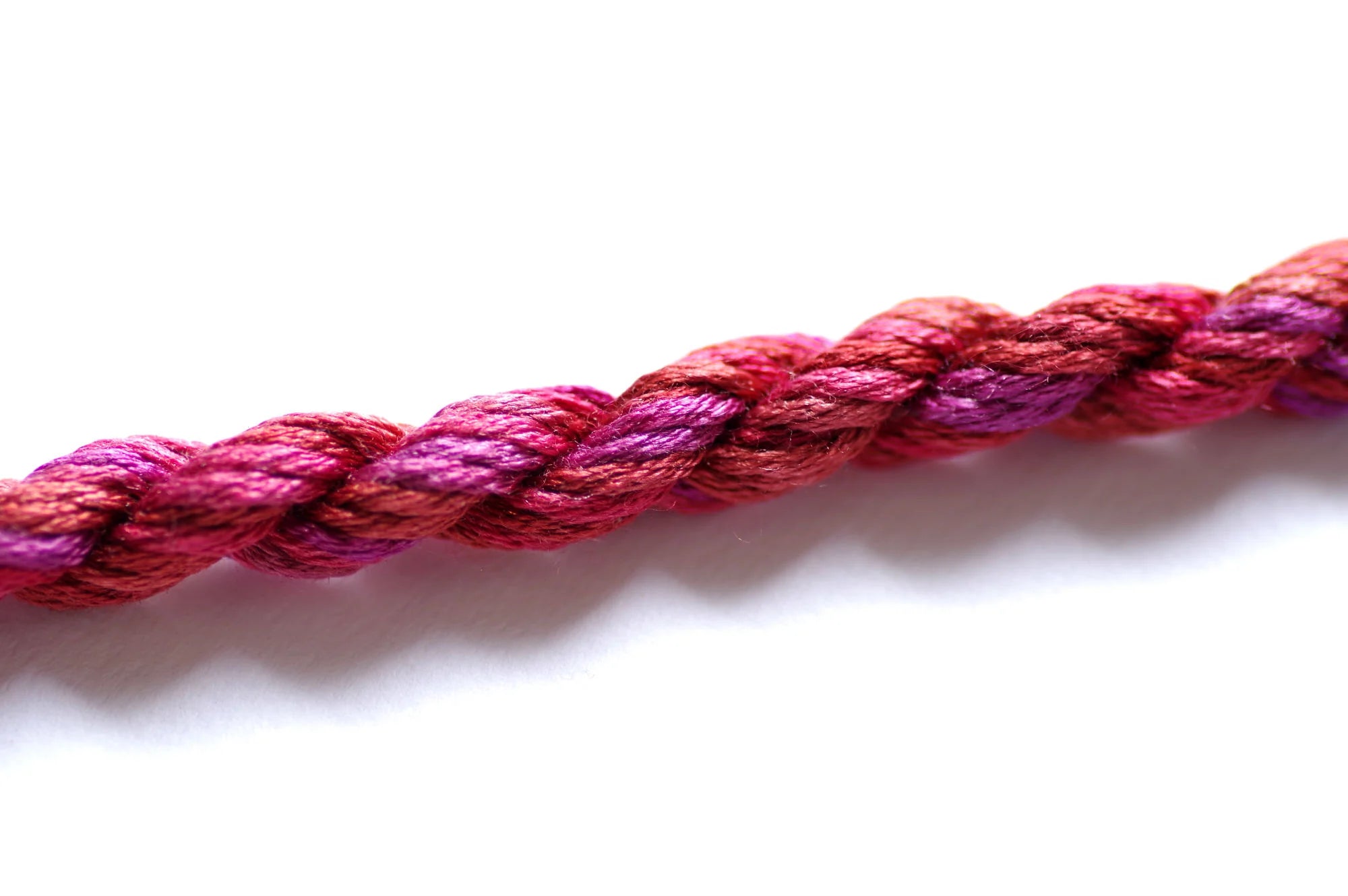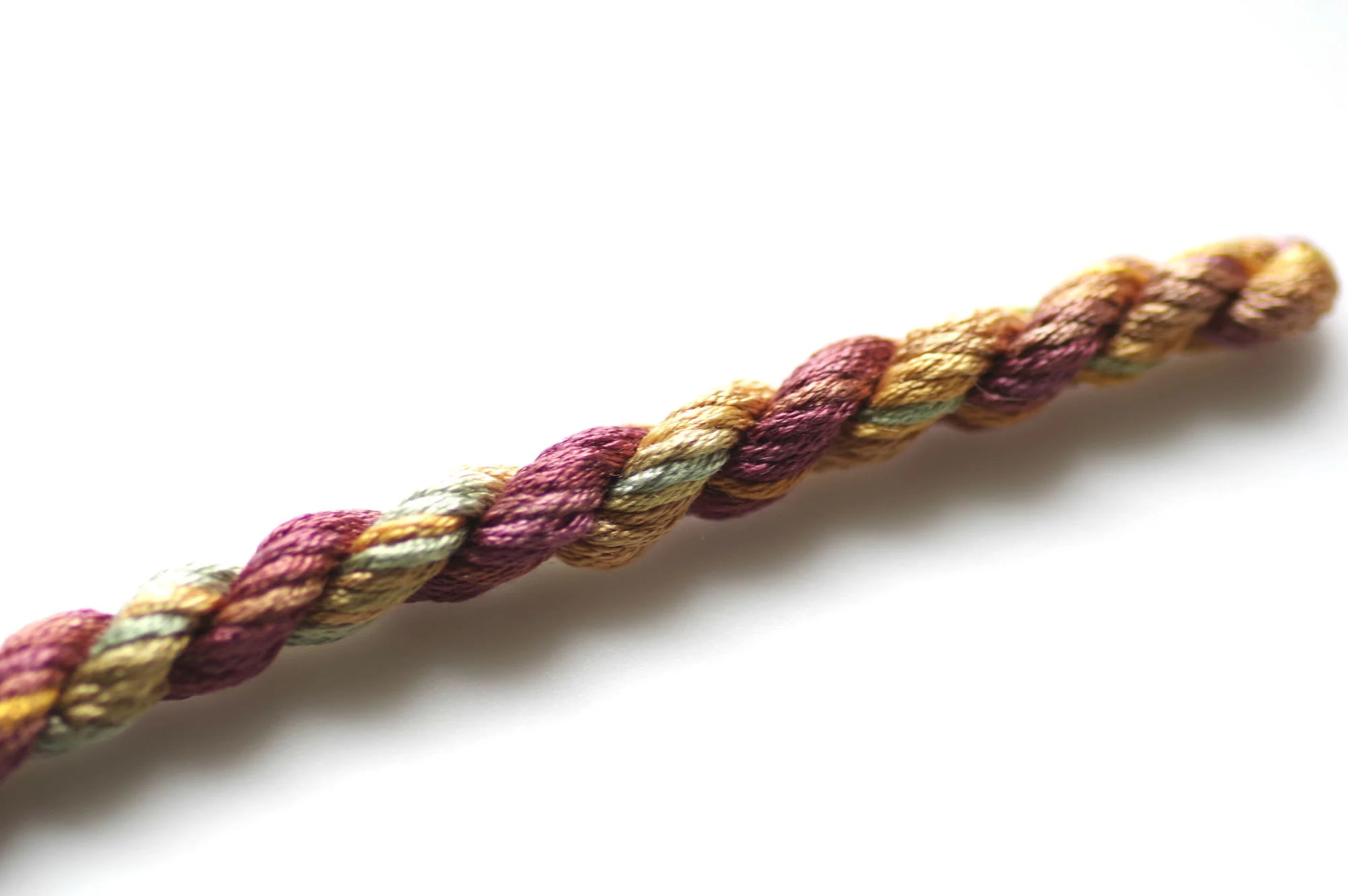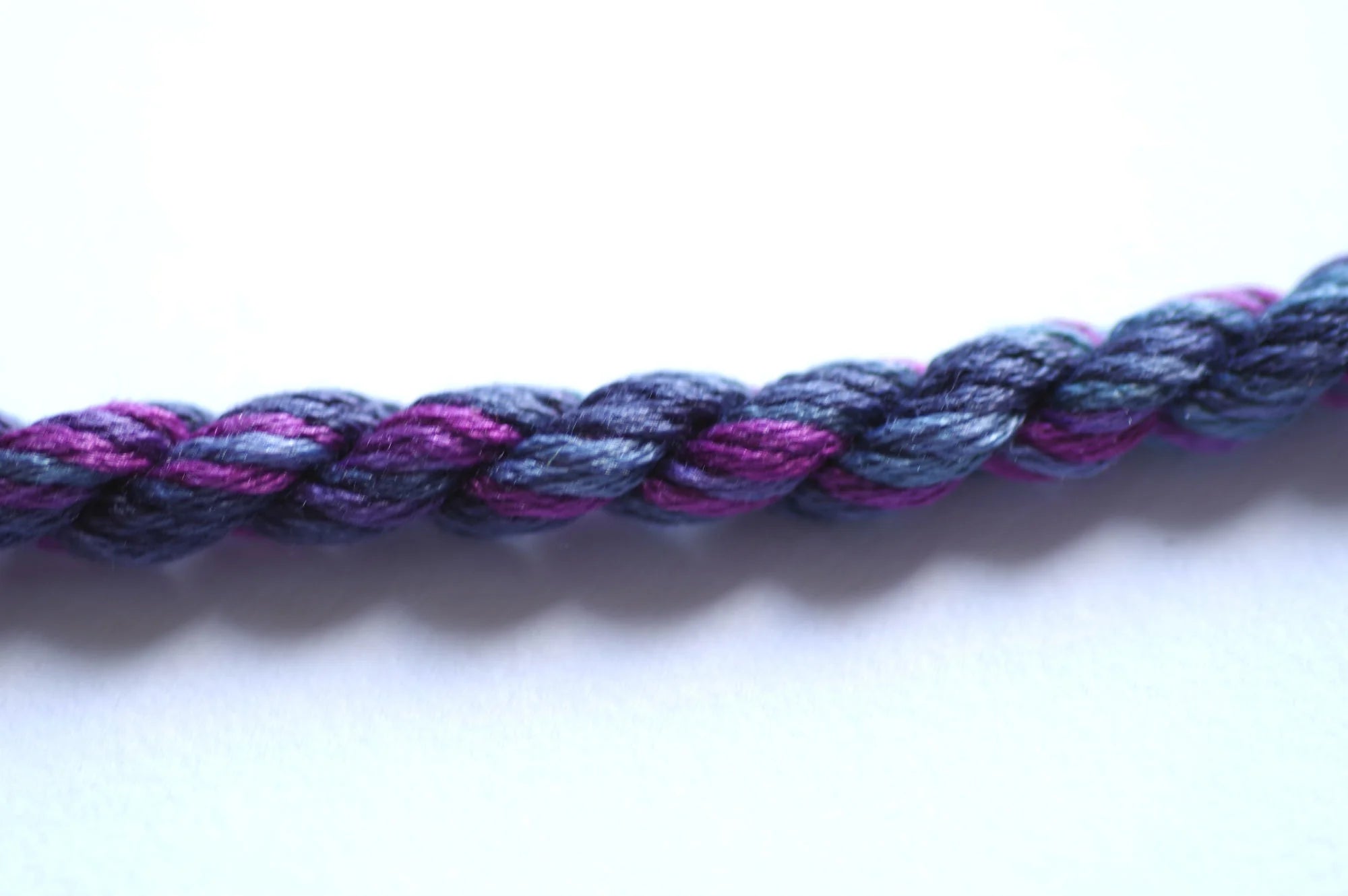 It is a 12-ply thread meaning you can use from 1 up to 12 strands at a time. It initially wants to separate into three groups of 4 strands. If you 'flower' or 'fluff' up the end, you will more easily see the initial separation. For cross stitch we recommend using 2-ply on 28 count, 1 ply on 32 count or higher. All other applications may require you to do a test sample to determine the correct ply for your project.