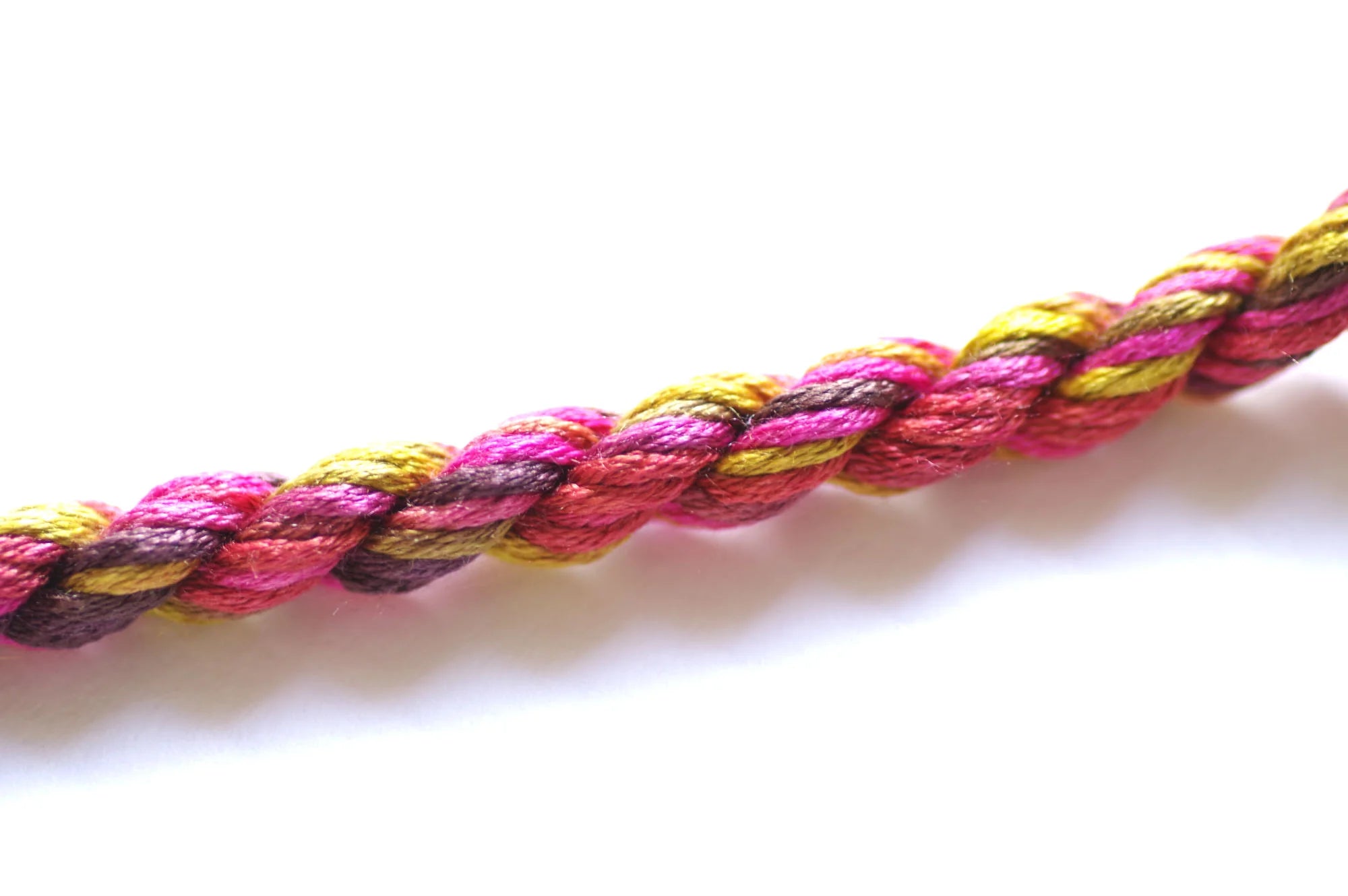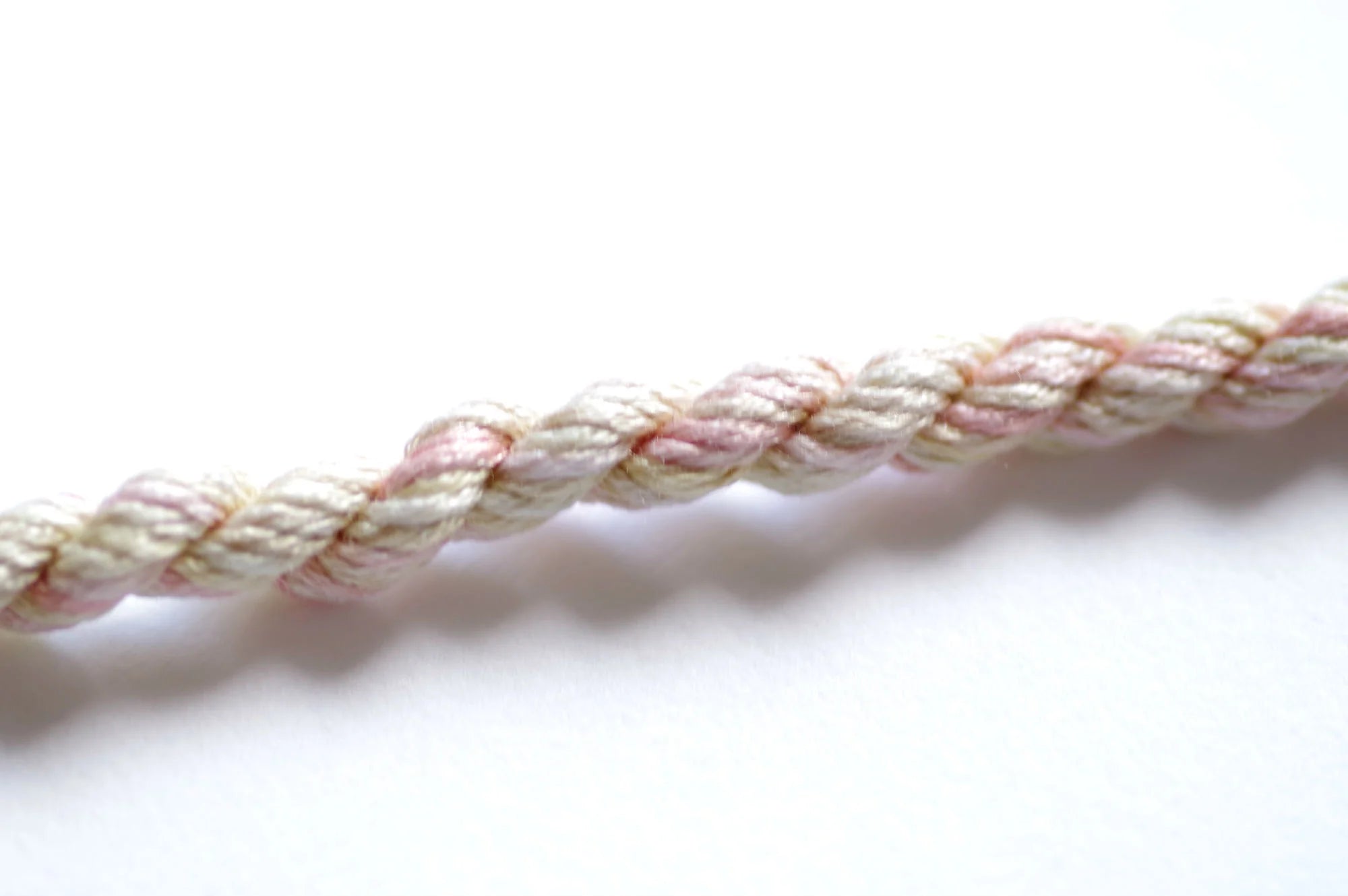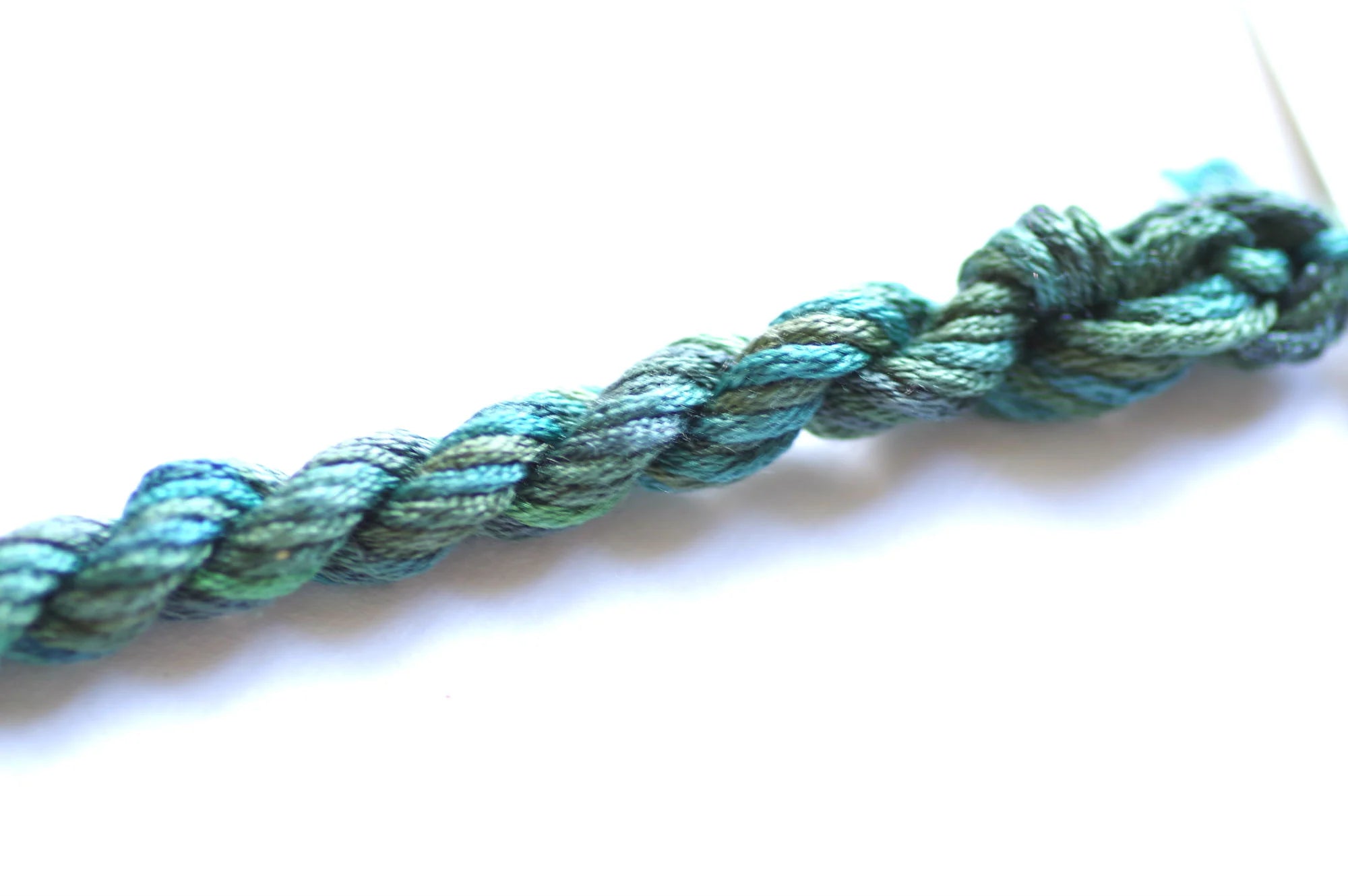 It is a 12-ply thread meaning you can use from 1 up to 12 strands at a time. It initially wants to separate into three groups of 4 strands. If you 'flower' or 'fluff' up the end, you will more easily see the initial separation. For cross stitch we recommend using 2-ply on 28 count, 1 ply on 32 count or higher. All other applications may require you to do a test sample to determine the correct ply for your project.