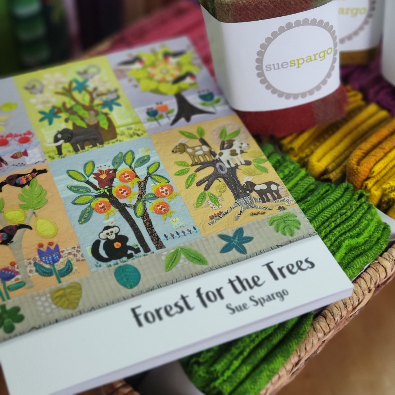 Jump into your traveling shoes and join Sue as she takes you around the globe for comprehensive study of trees. From Jamaica to Morocco, from the United States to South Africa, immerse yourself in this worldly adventure and develop an understanding of each tree’s ideal climate to flourish. Prior to starting each block, enjoy a small story that accompanies each trees chapter. Learn new techniques along with wool applique, layering, cotton applique, embroidery, dimensional embroidery and how to create texture.