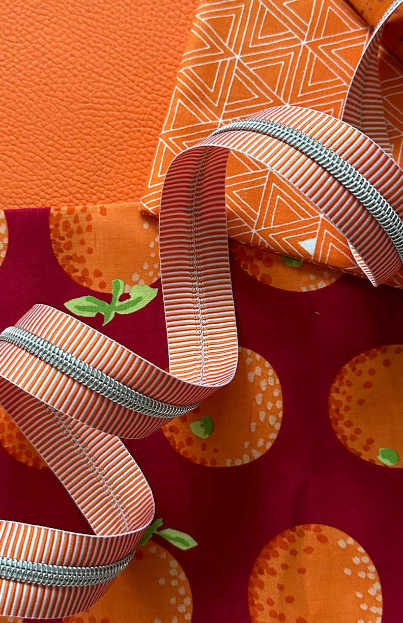 #5 Zipper Tape - Orange Stripe Nickel Teeth - 3 yards