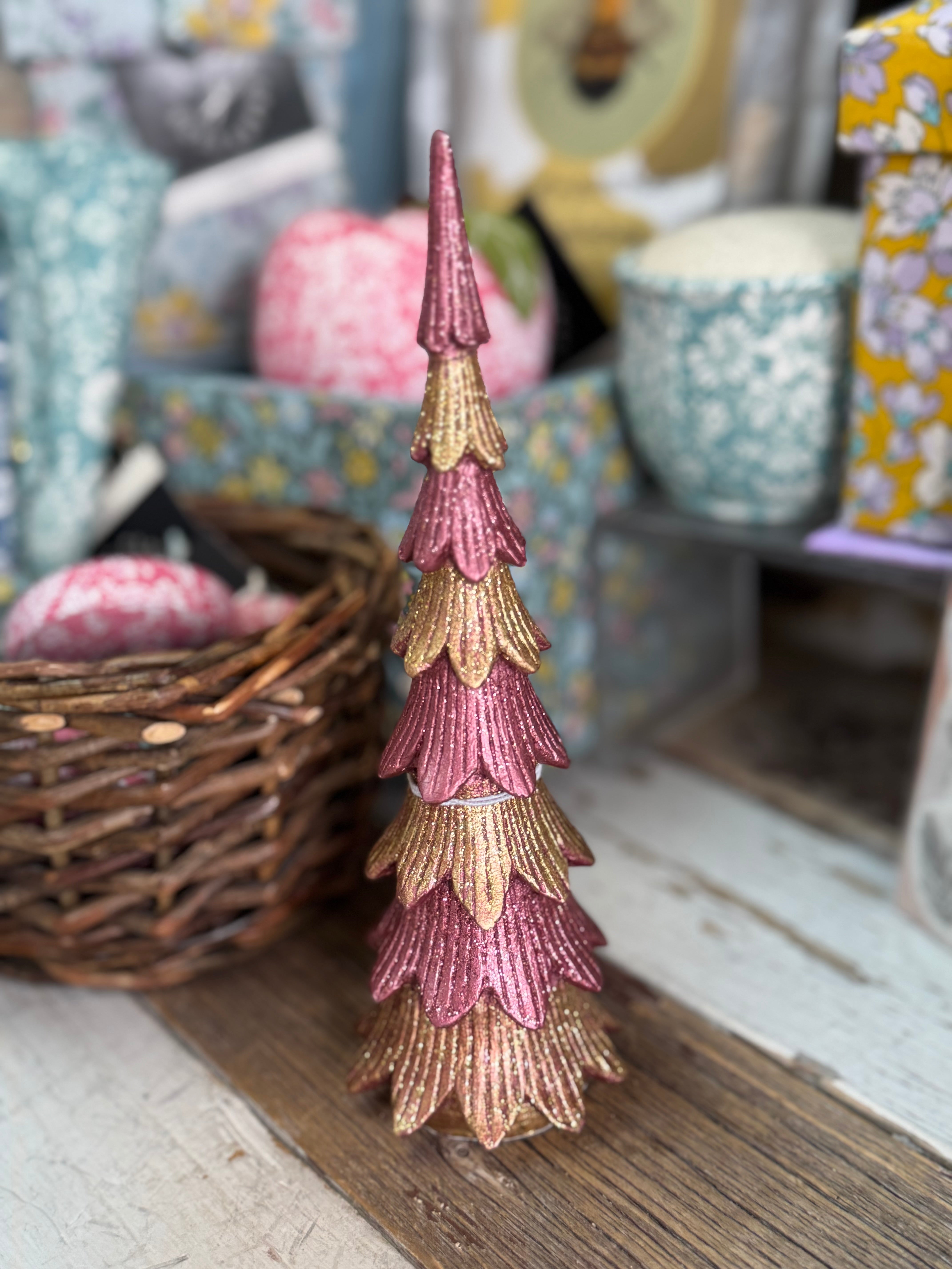 7" Tabletop Christmas Tree - Magenta/Gold