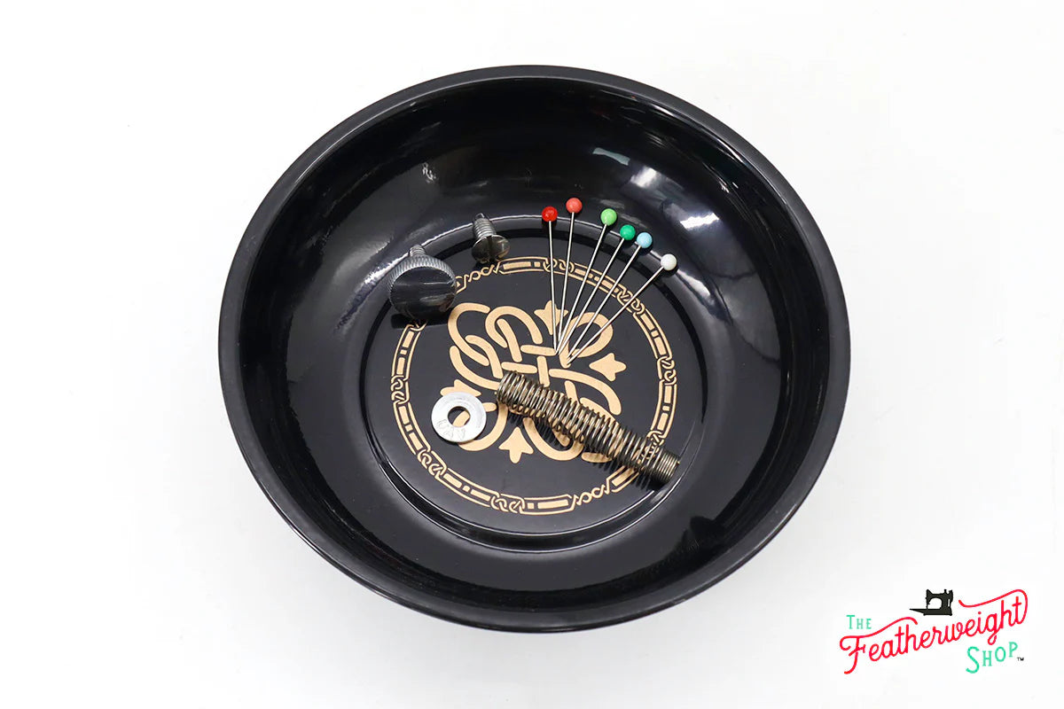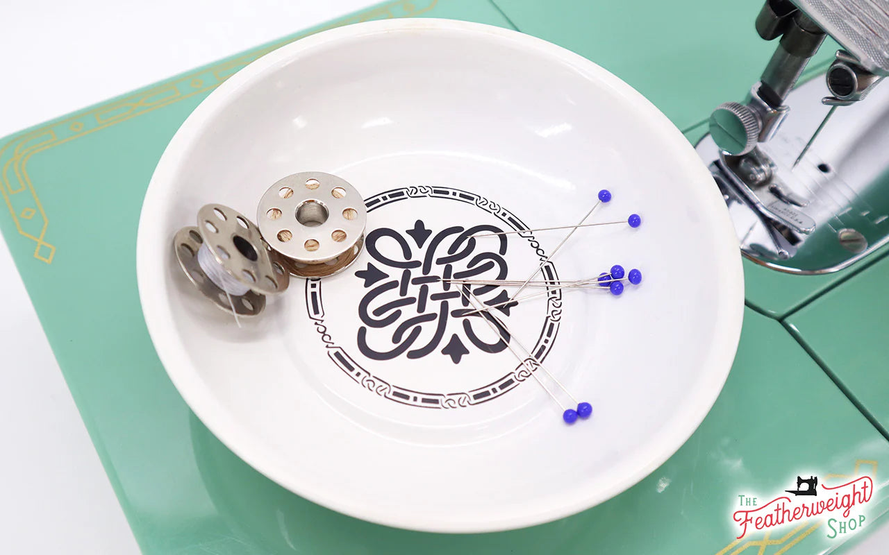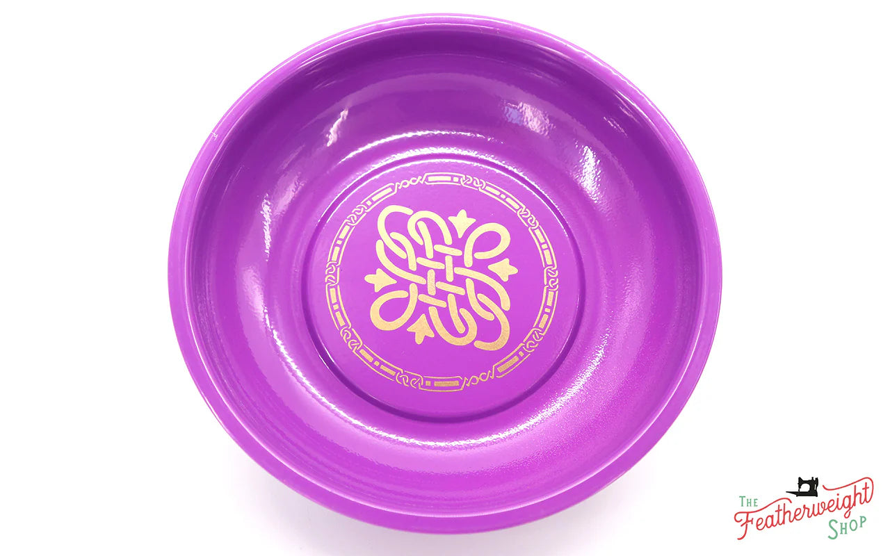 Ces bols sont façonnés d'après le poids plume original, avec des décalcomanies violettes et dorées, distinctives du Singer Featherweight 221. Tout neuf et décoratif à étiqueter avec toute votre couture et votre entretien portables ! Ce bol magnétique ne sert pas seulement à garder toutes vos épingles, bobines, attaches et accessoires prêts et à portée de main, mais c'est également le compagnon idéal lorsque vous entretenez et entretenez votre machine... Il contiendra toutes ces petites vis et bits en toute sécurité.... et MIGNONNEMENT ! L'aimant super puissant situé sous la parabole est également parfait pour localiser les vis ou les broches qui atterrissent sur le sol ou dans des endroits obscurs.