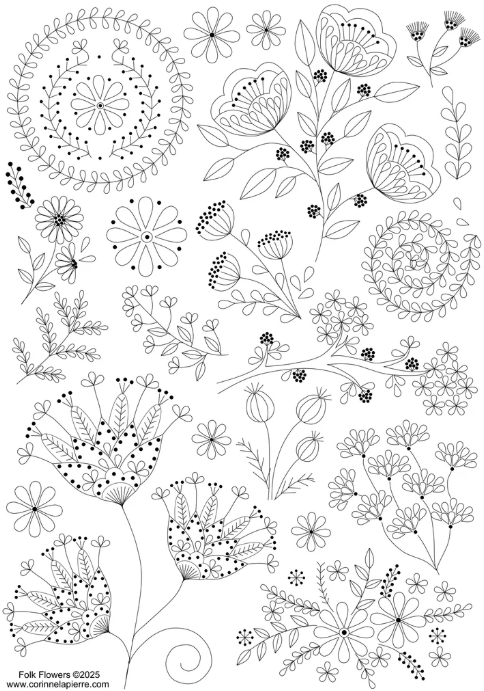 Corinne Lapierre - Folk Flowers Stick & Stitch Embroidery Designs