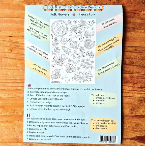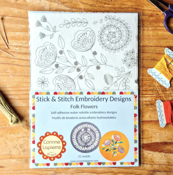 Their easy to use self-adhesive water soluble transfer sheets can be used on all washable fabrics to personalise and decorate your textiles. Simply cut out the design, peel off the backing, stick onto your choice of fabric or clothing and embroider. Once completed, the pattern can be rinsed away in warm water leaving just your very own beautiful embroidered creation.