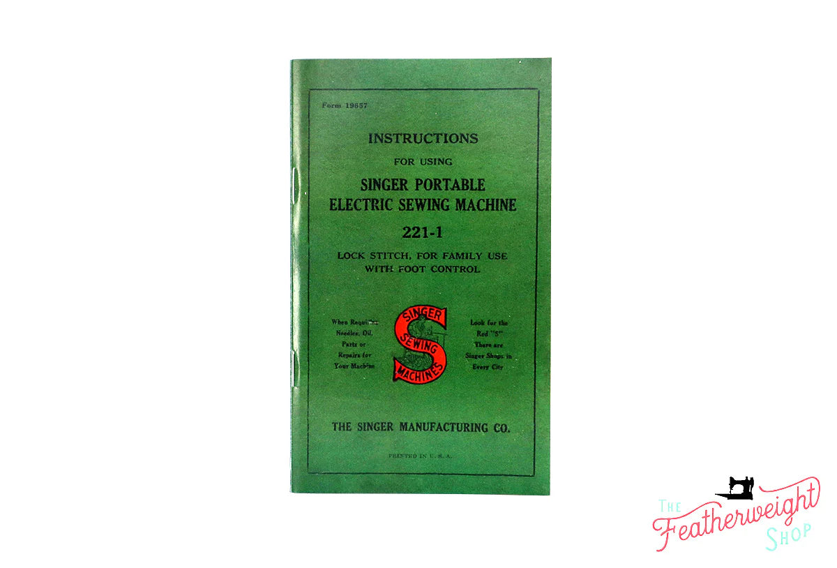 This replica is identical to an original Singer Featherweight 221 manual... (even the glossy pages inside!) The look, size, shape and feel of this exact replica will amaze you. Machine instructions and attachment know-how will be a perfect companion for your machine. This manual will work for the Singer Featherweight model 221, 221-1, 221K, 221J, and 221K5.