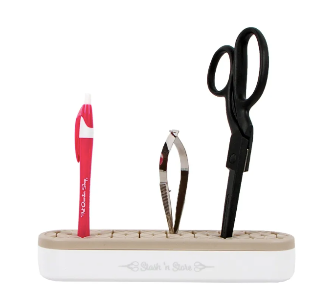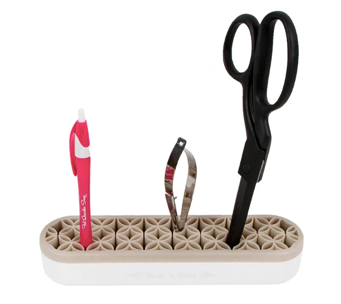 The new Stash ‘n Store is the perfect device to keep your sewing and crafting notions within arm’s reach and ready to go! Easily store marking tools, scissors, stilettos, rulers, even brushes and small rotary cutters, in an easy-to-grab upright position. The silicone pockets are smooth and offer a sturdy grip and it is also simple to clean. Available in various colors, collect them all for your sewing room, vanity and home office!