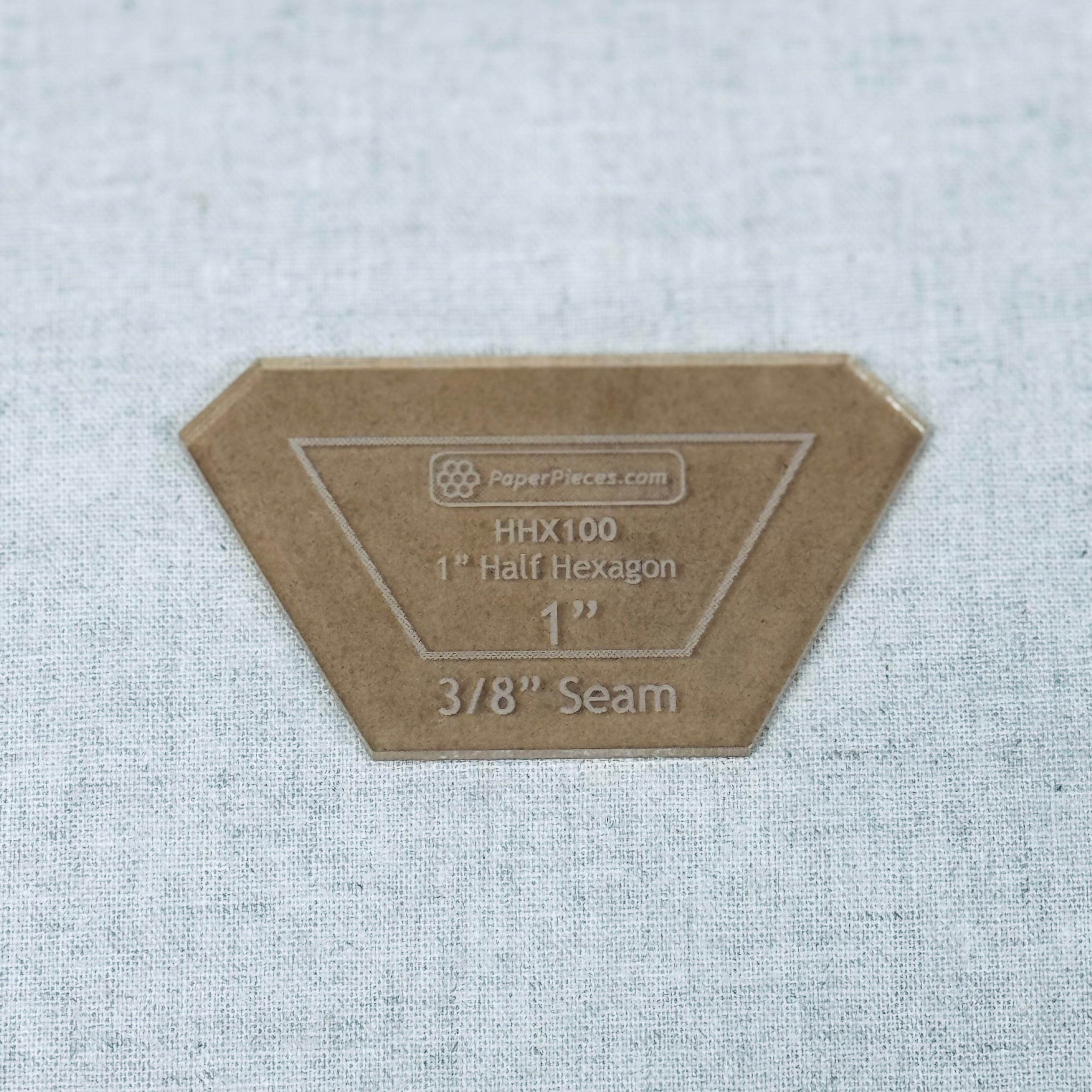 Paper Pieces - 1" Half Hexagon Acrylic Template - 3/8” Seam Allowance
