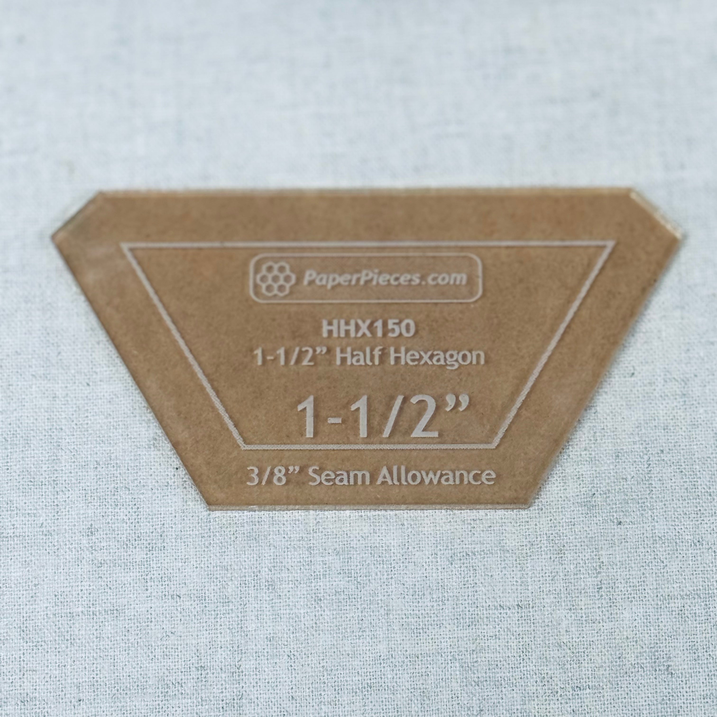 Paper Pieces - 1-1/2" Half Hexagon Acrylic Template - 3/8" Seam Allowance