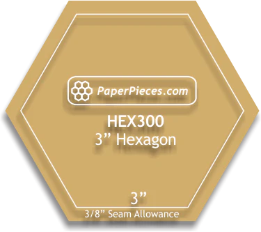 Paper Pieces - 3" Hexagon Acrylic Template - 3/8" Seam Allowance