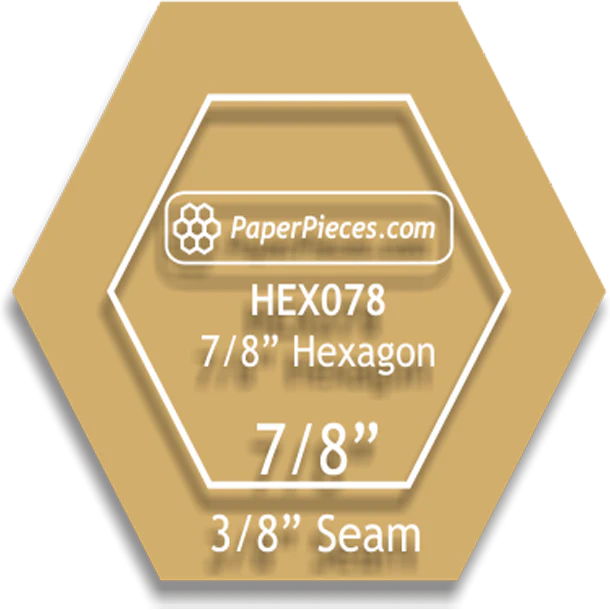 Paper Pieces - 7/8" Hexagon Acrylic Template - 3/8" Seam Allowance
