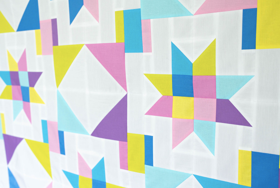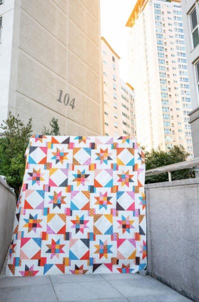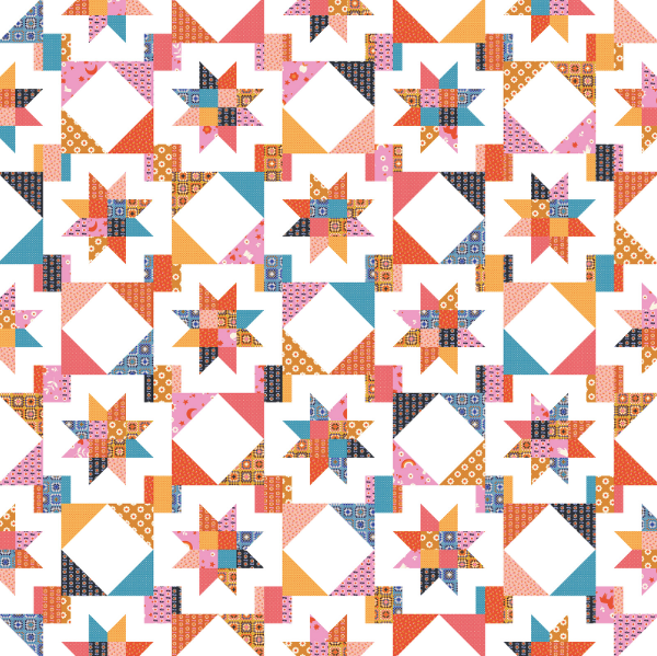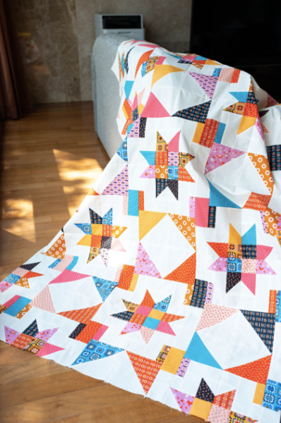 Early Hours is a fat quarter friendly quilt pattern that bursts with one of a kind character! These patchwork stars radiate and glow in any fabric combination with a beautiful, modern geometric flair!