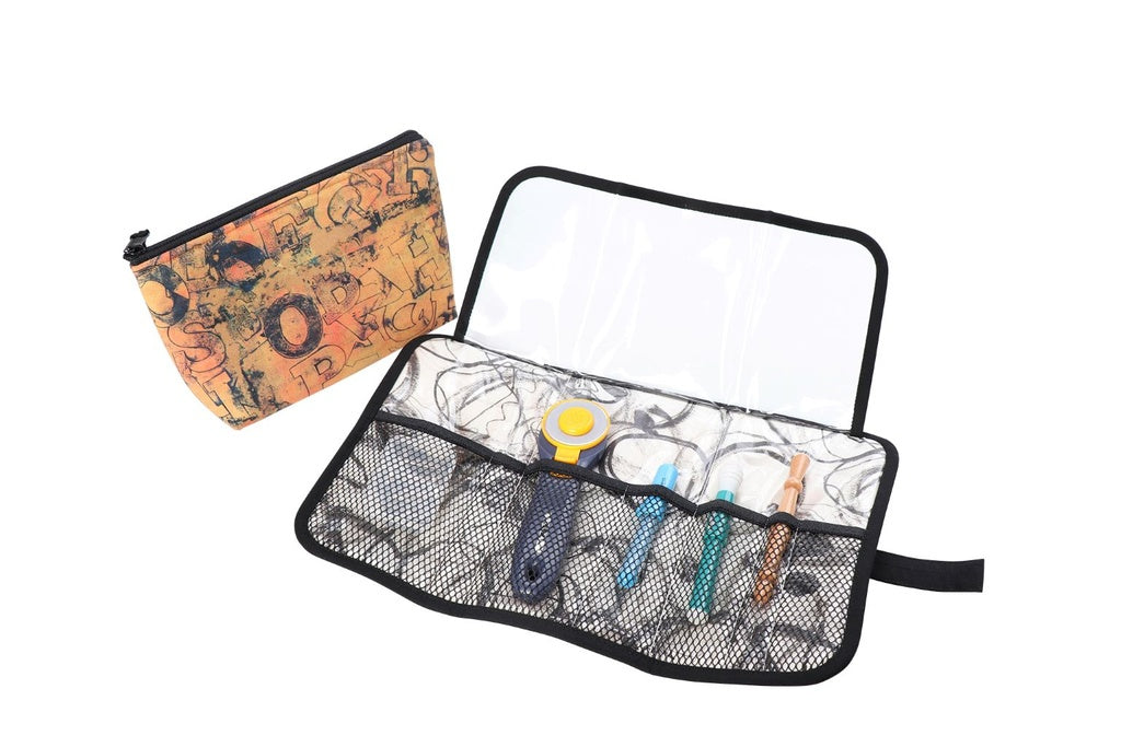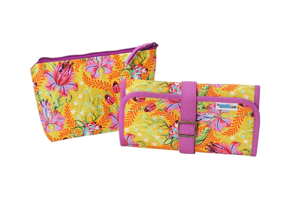 Designed by Annie's beautiful globe-trotting daughter-in-law Glo, this handy folding wrap with strap closure and coordinating zippered bag make it easy to store and organize all your essentials in style.
