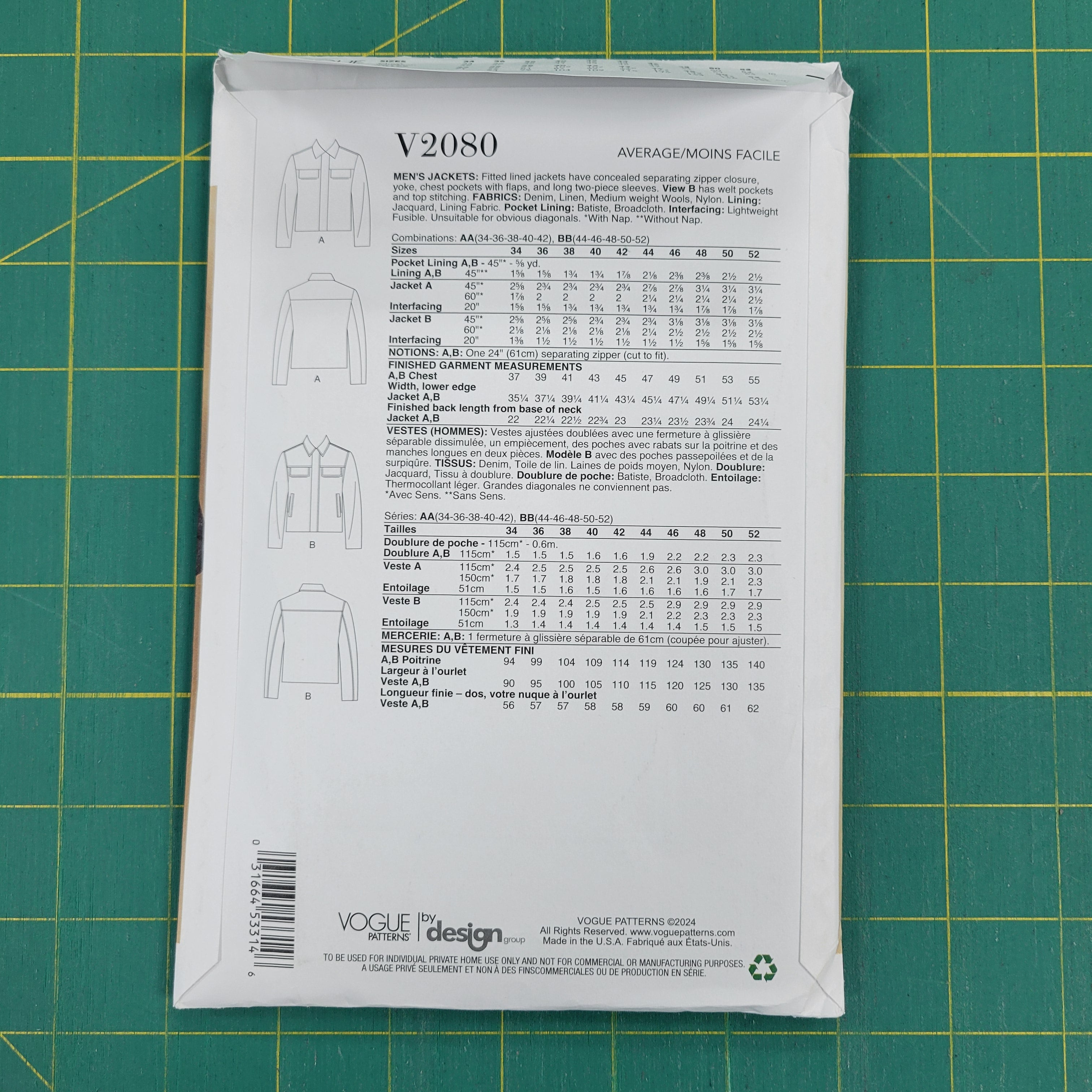 Vogue Pattern 2080 BB by Ron Collins - Size 44-52