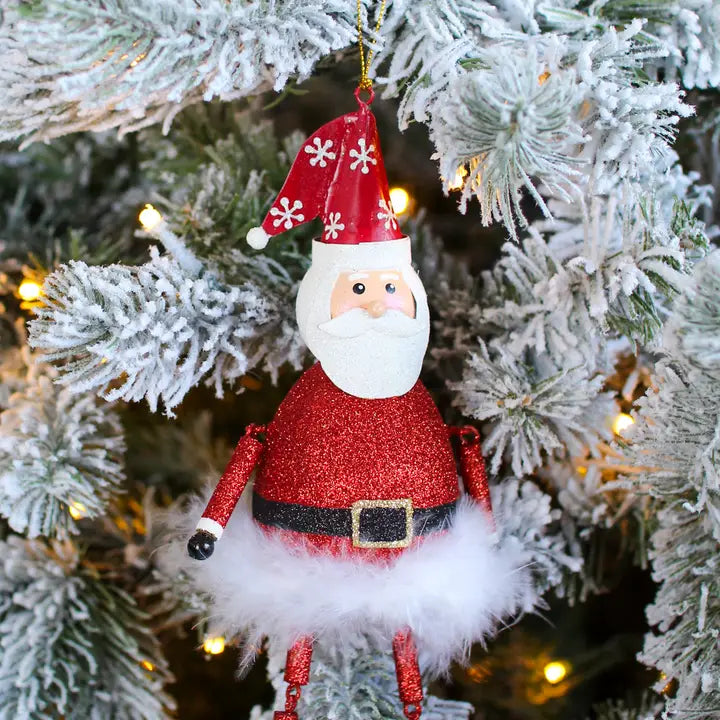 Adorable Santa ornament with dangling arms and legs, giving a cute dancing effect.
