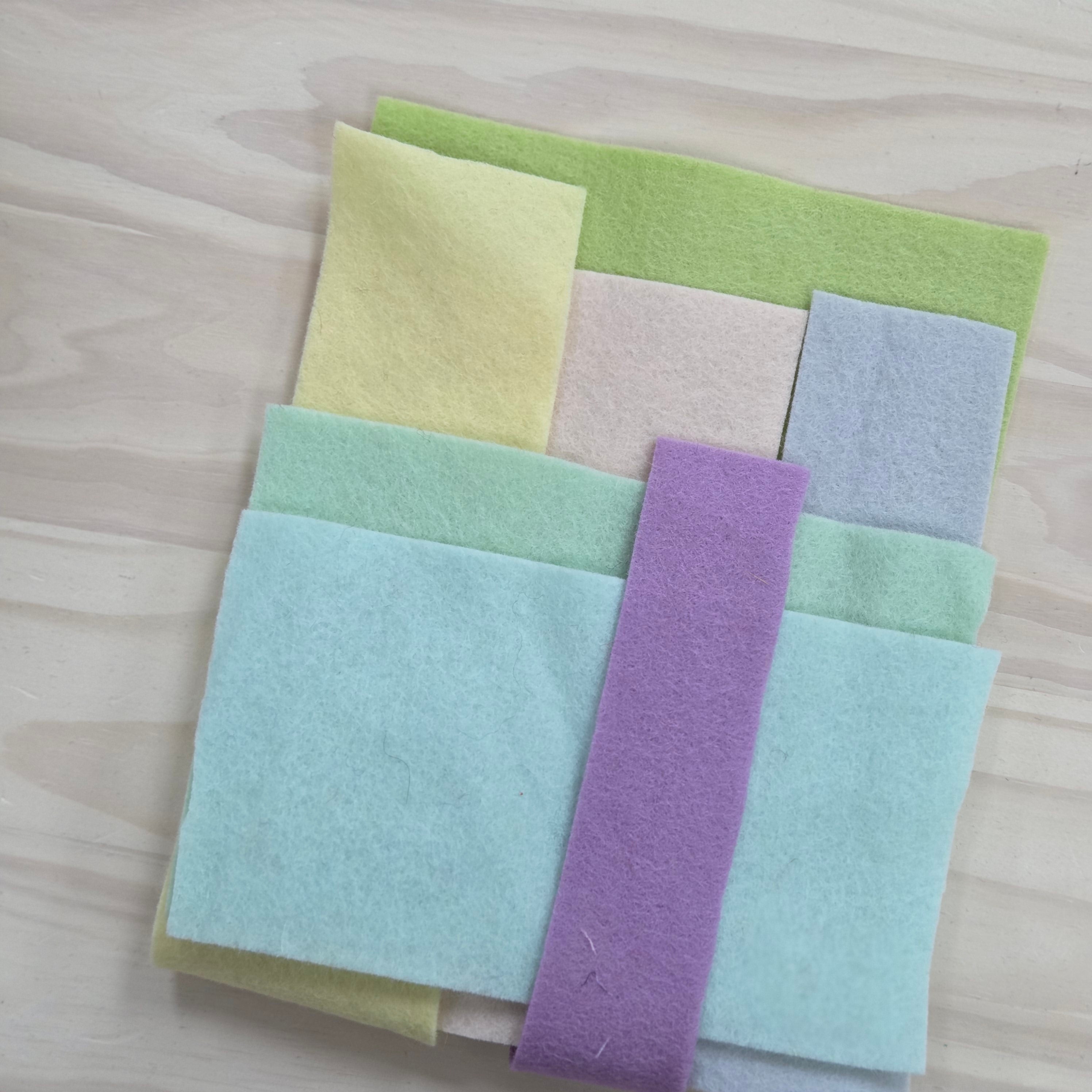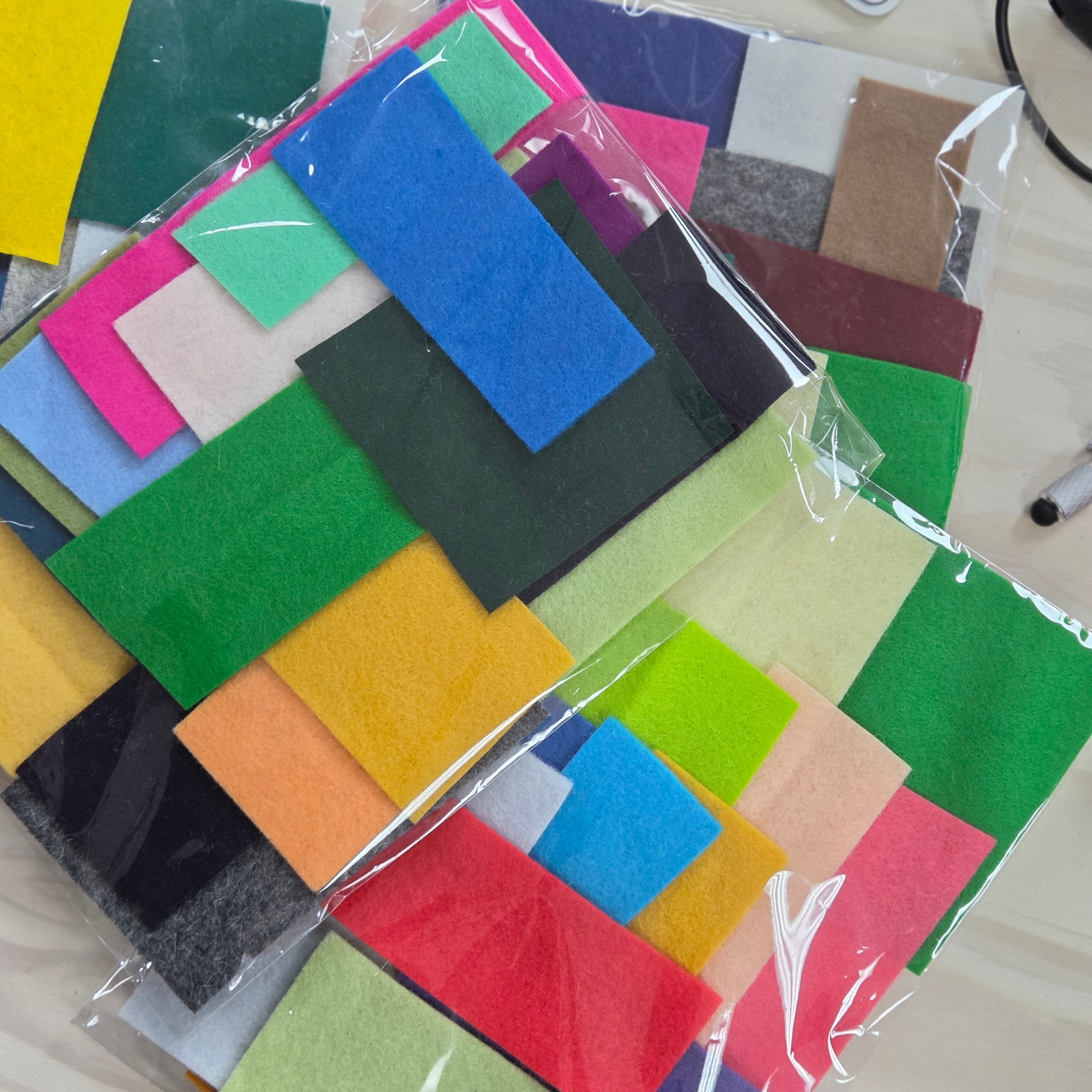 Chaque paquet contient une sélection colorée de morceaux de feutre coupés de différentes tailles. C'est un excellent moyen de constituer votre réserve et de réaliser vos petits projets.