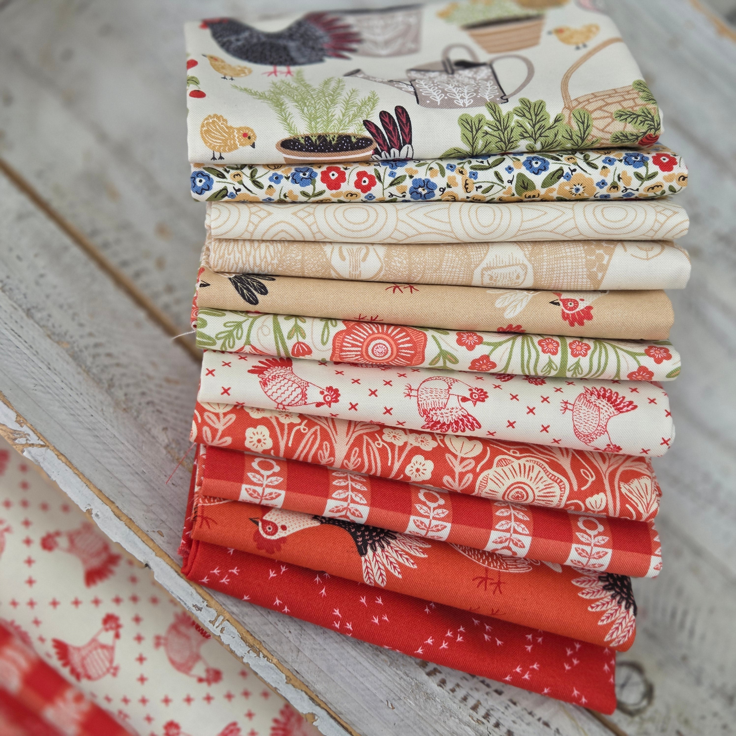The Henhouse - 11 Piece Fat Quarter Bundle Tomato - Gingiber