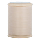 100% cotton. The glazed finish keeps it from tangling or knotting, makes it glide smoothly through the fabric layers, and simplifies needle threading.