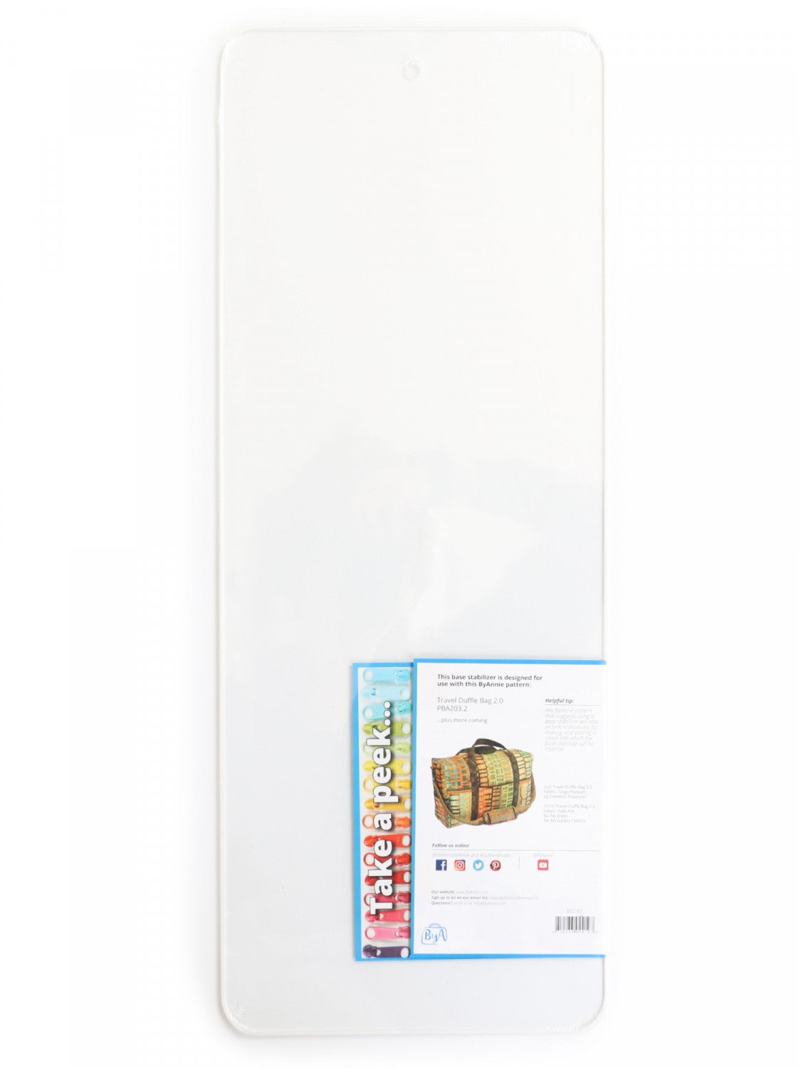 Add support to the base of your ByAnnie project using this sturdy clear acrylic stabilizer. Each base stabilizer insert measures 7.75in wide x 20.5in long x 1/10in thick.