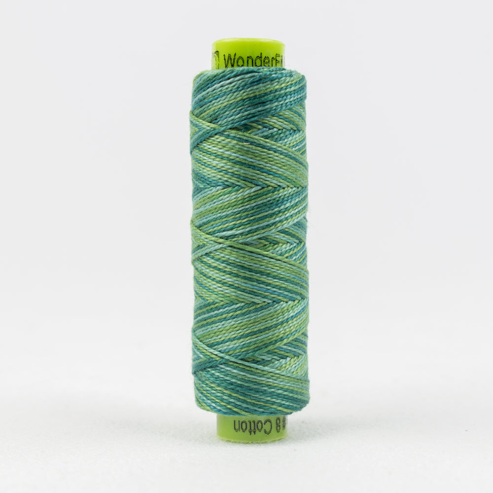 This gorgeous 8wt, random dyed contrasting variegates, 2-ply 100% long staple Egyptian cotton thread is double-gassed and mercerized, resulting in a wonderfully smooth and lustrous surface that allows the thread to glide beautifully through all types of fabrics and fibres. The thread’s tight twist creates beautifully firm stitches while its surface sheen produces a luxurious finish to embellishment stitchery.