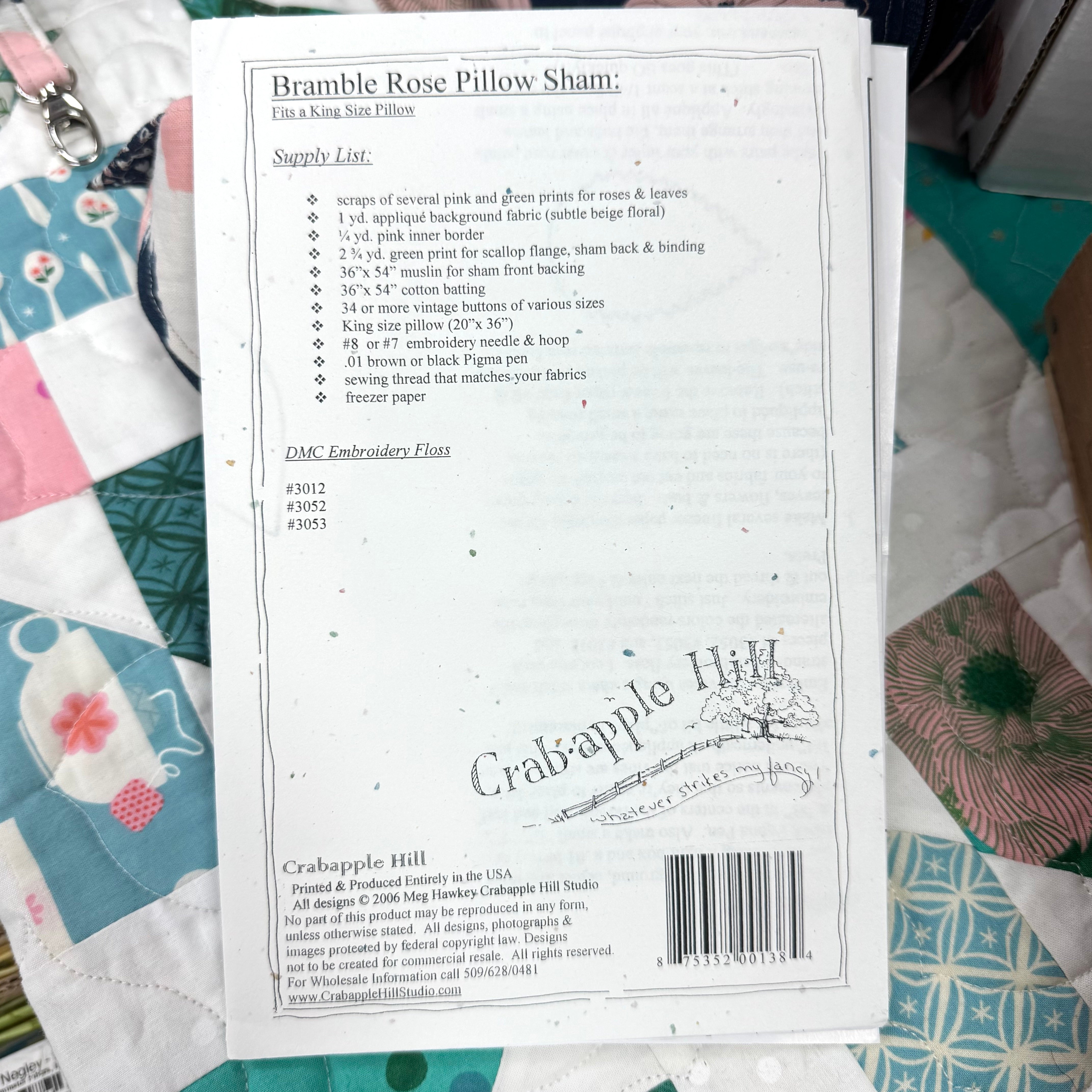 Bramble Rose Pillow Sham Pattern by Crabapple Hill Studio
