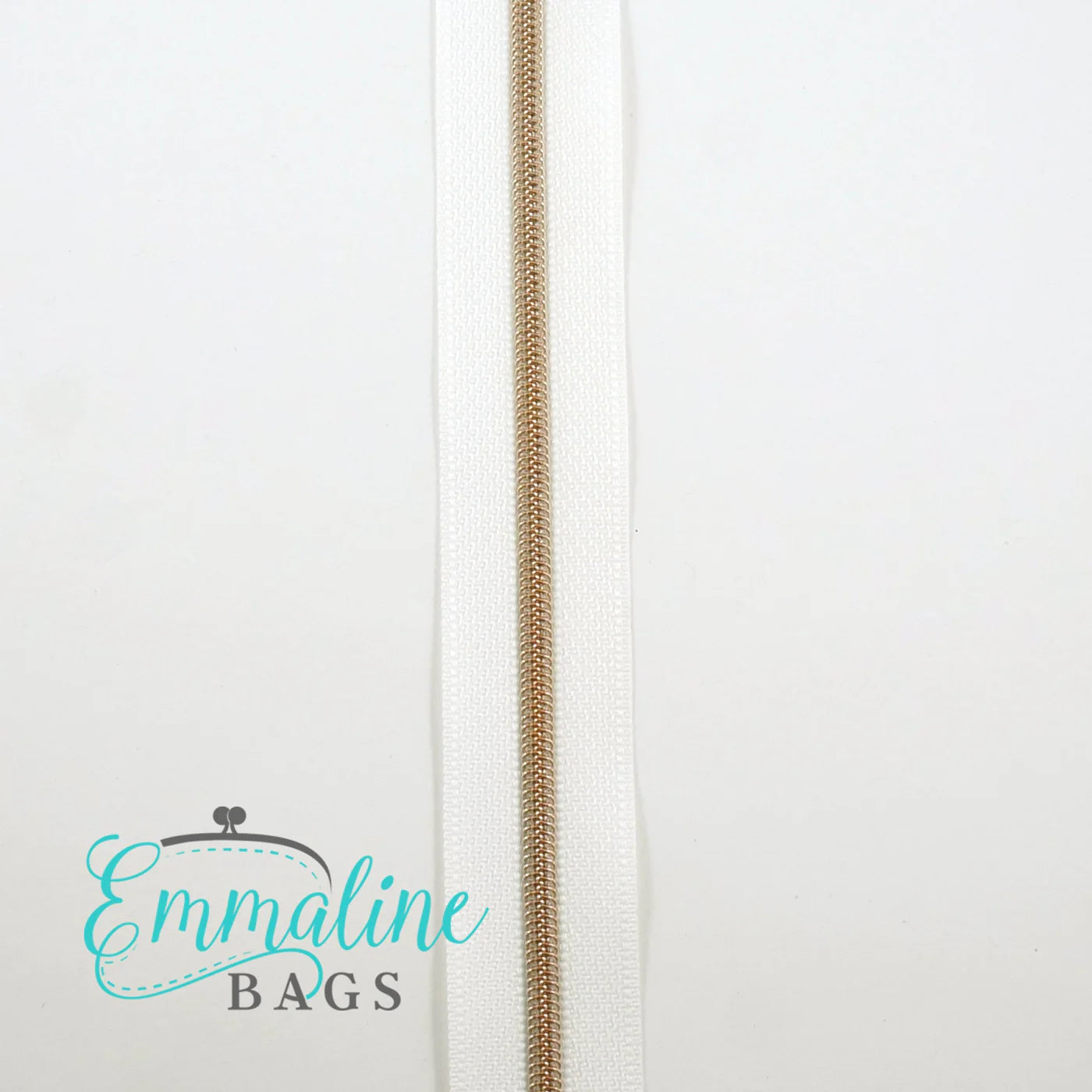 Emmaline #3 Zipper By The Yard - 3 Yard Length: White/Rose Gold
