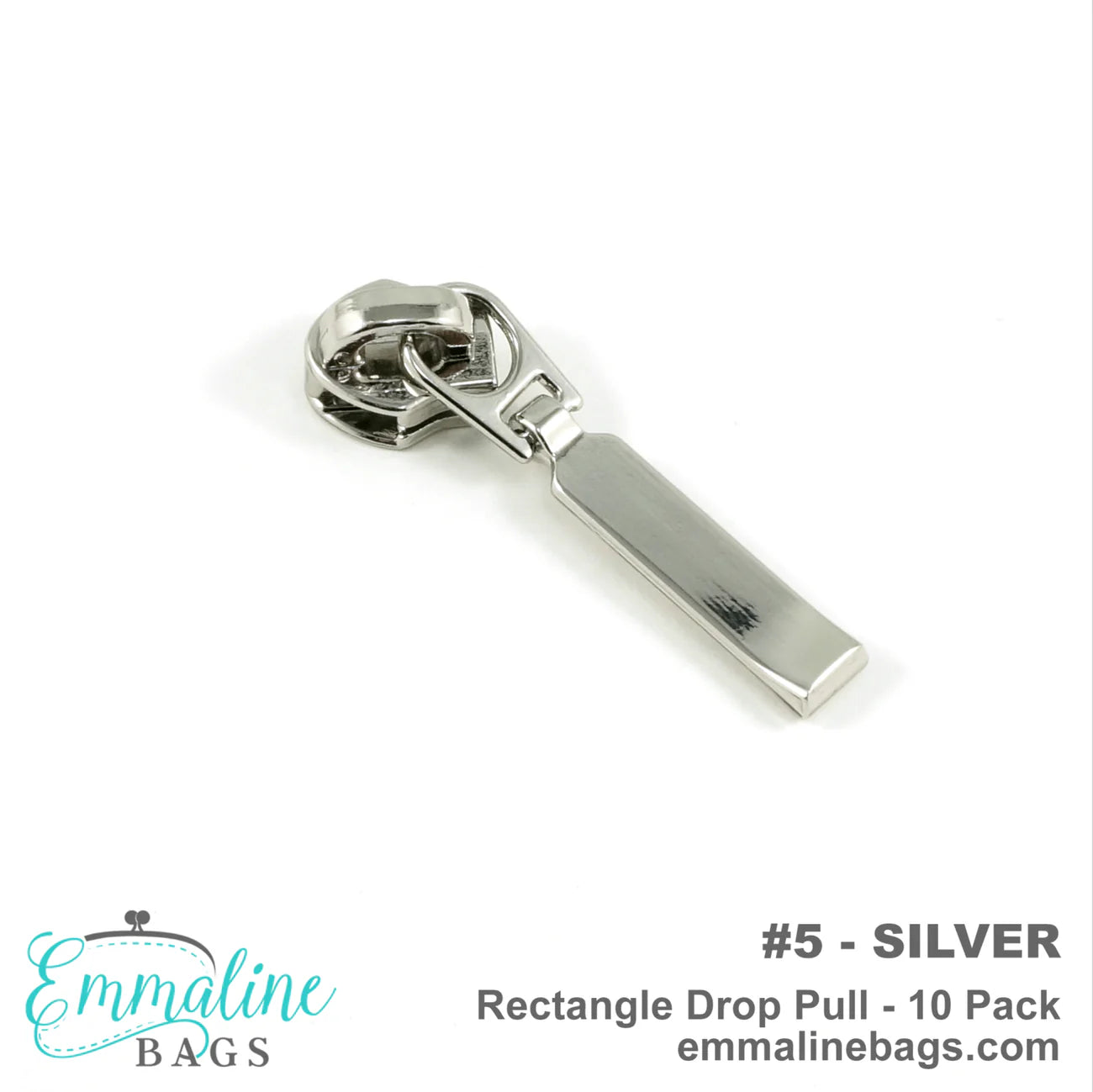 Emmaline #5 Rectangular Drop Zipper Pulls - Silver