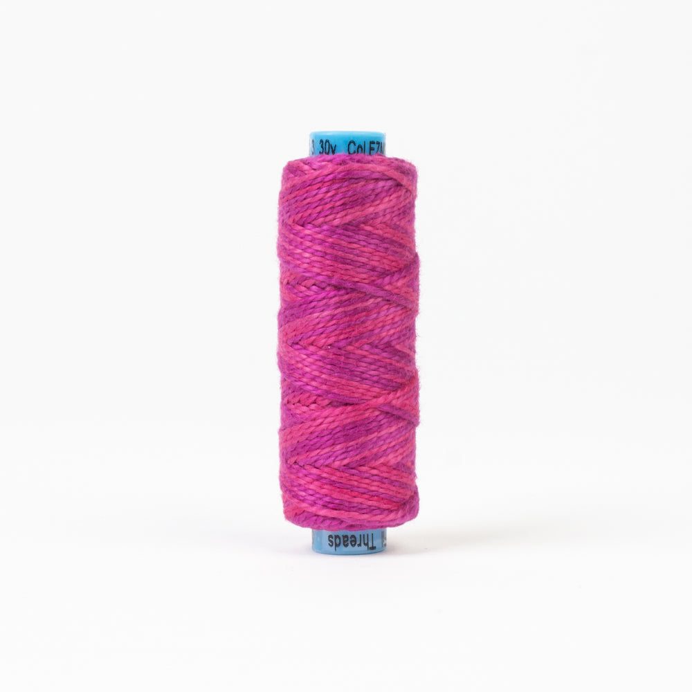 This gorgeous 3wt, random dyed contrasting variegates, 2-ply 100% long staple Egyptian cotton thread is double-gassed and mercerized, resulting in a wonderfully smooth and lustrous surface that allows the thread to glide beautifully through all types of fabrics and fibres. The thread’s tight twist creates beautifully firm stitche
