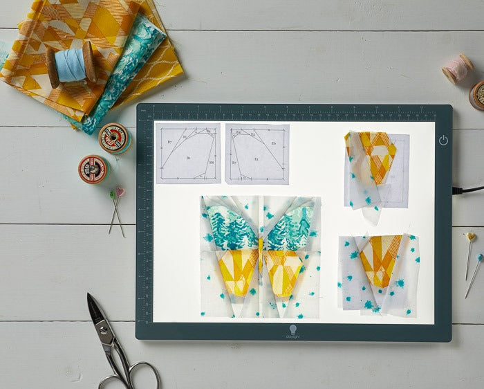 Ultra bright, ultra slim, ultra light, the Daylight Wafer lightbox is your must have tool for tracing, on paper or fabric. LED lightbox for an even brightness from edge to edge, the light is dimmable to suit paper weight and fabric thickness and include a handy marking guide on the sides (inches and centimetres).