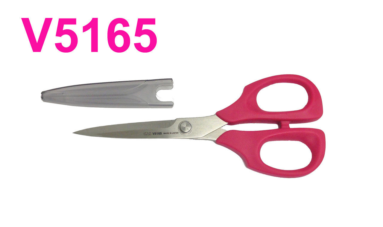 The KAI - 6 1/2" scissor will allow fatigue-free cutting on all types of fabric. Cuts multiple layers of denim with ease while trimming cottons without any fabric slippage. The KAI V5165 has the standard 5000 series blade with colored handles and includes a full blade cap for safe storage.