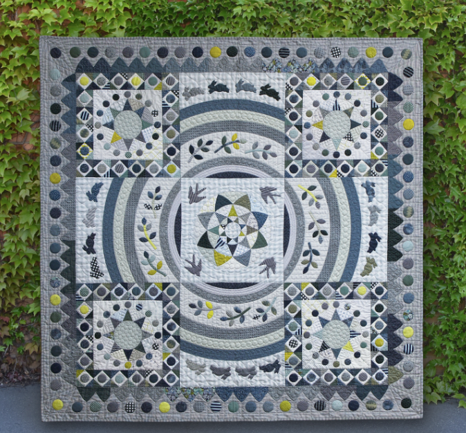 The result is sophisticated & refined with a touch of whimsy - Jen mixed techniques of machine, hand piecing and appliqué to create this hybrid sampler style / medallion quilt.