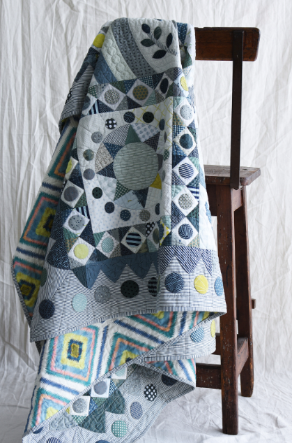 Made exclusively from ‘Greenstone’ (her latest range with Moda) in which Jen combined a range of hues within a narrow palette of blues, greens and greys & a playful mix of prints.
