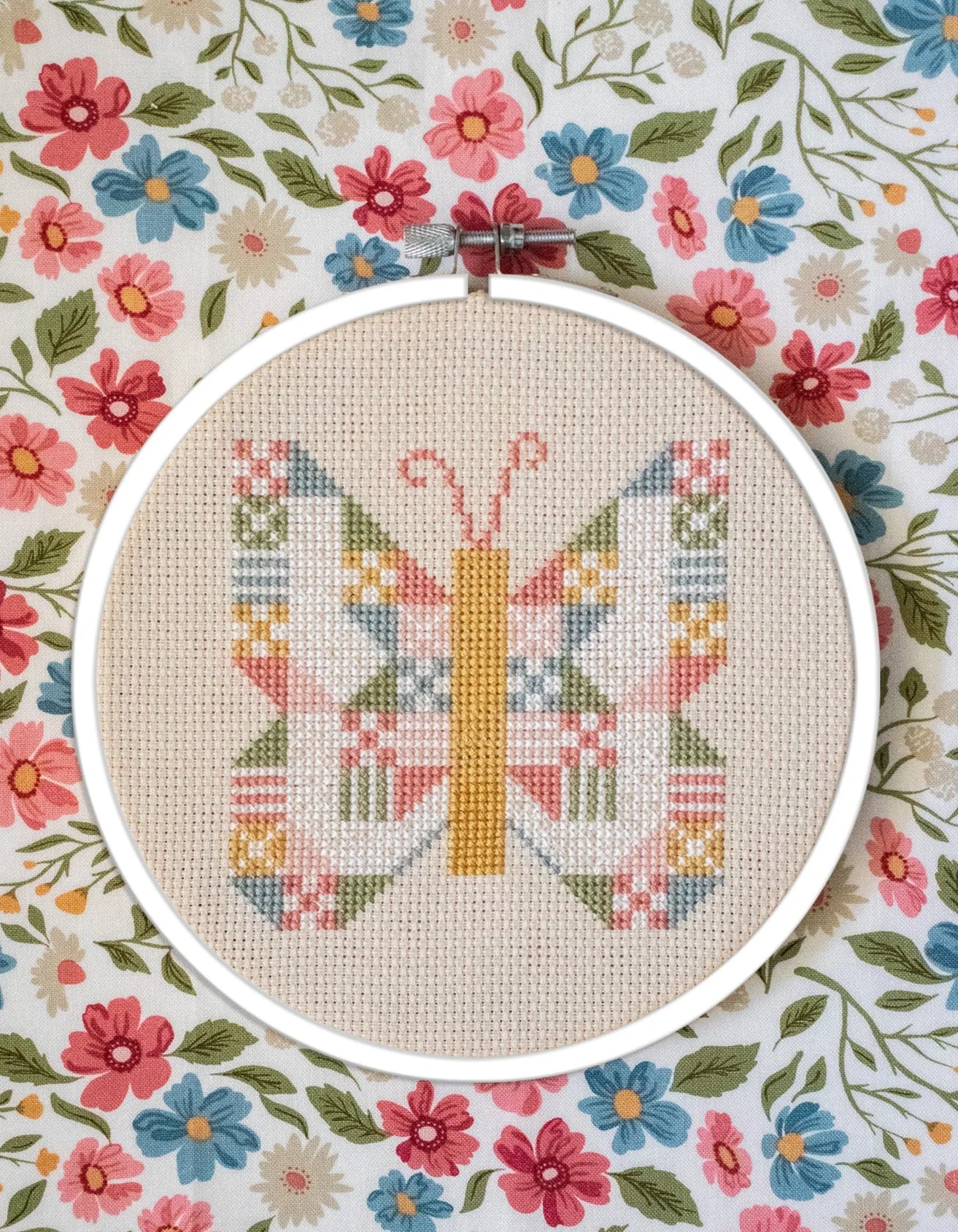 Stitch by stitch, this little patchwork butterfly flutters to life. "Butterfly Patch" brings a touch of whimsy to your hoop, blending nostalgic cross-stitch with a charming quilty twist. Whether you're a seasoned stitcher or just spreading your wings, this sweet design is sure to brighten your day - one tiny X at a time!