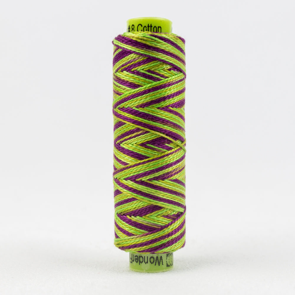 This gorgeous 8wt, random dyed contrasting variegates, 2-ply 100% long staple Egyptian cotton thread is double-gassed and mercerized, resulting in a wonderfully smooth and lustrous surface that allows the thread to glide beautifully through all types of fabrics and fibres. The thread’s tight twist creates beautifully firm stitches while its surface sheen produces a luxurious finish to embellishment stitchery.